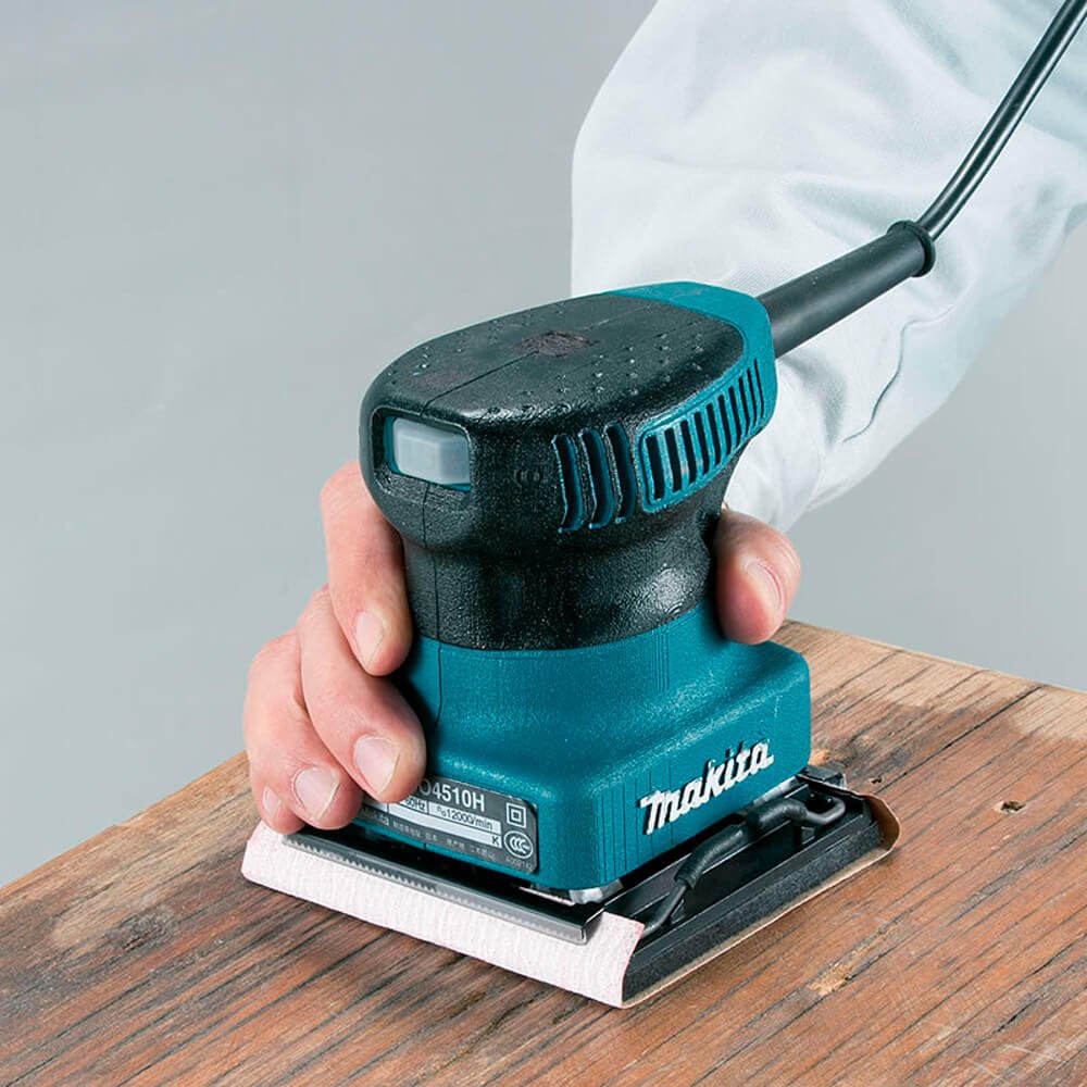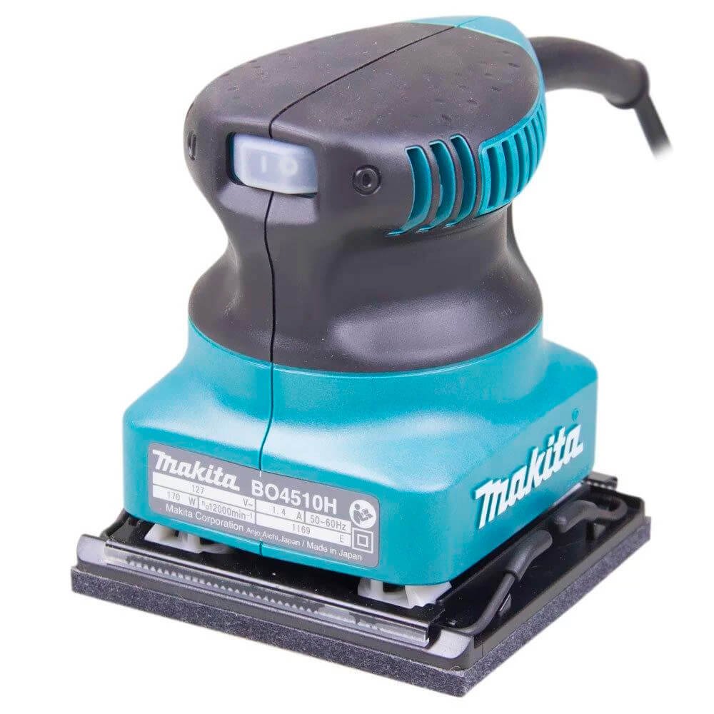 A Lixadeira Orbital 170W BO4510H Makita é ideal para trabalhos profissionais em setores de marcenaria, construção, manutenção, mecânicas para fazer: desbaste, lixamento de madeiras, unificação e acabamentos de superfícies, etc. Seu corpo é emborrachado, permitindo assim um manuseio mais prático, e os cantos da base são arredondados que ajudam a proteger a peça a ser trabalhada.