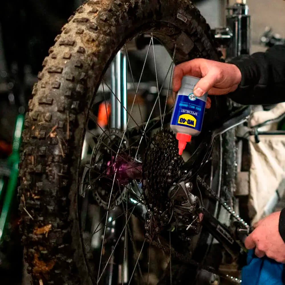 WD-40® Specialist Bike WET/Úmido é um lubrificante para a corrente da bike de alto desempenho formulado para condições de chuva e lama extremas. Oferece uma camada duradoura que ajuda a repelir água e lama, protegendo a corrente da bicicleta e prolongando sua vida útil. Além disso, a fórmula funciona em temperaturas abaixo de zero, permitindo que você continue pedalando durante todo o inverno.