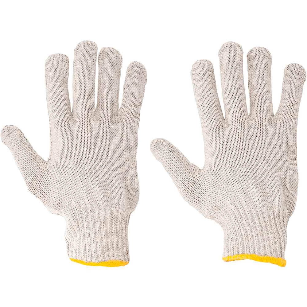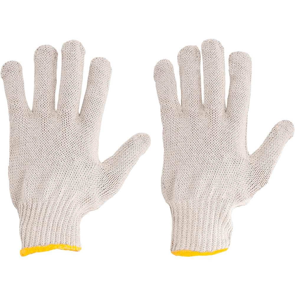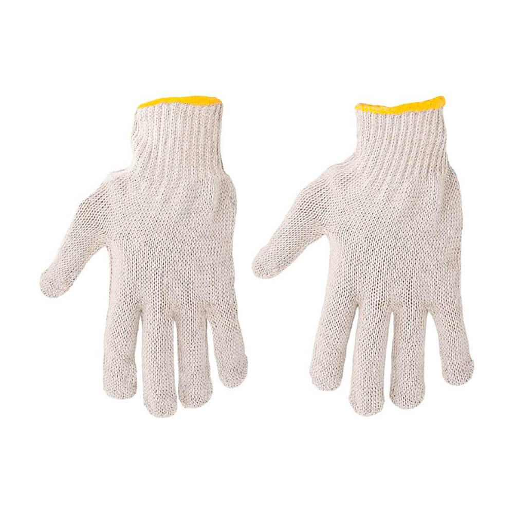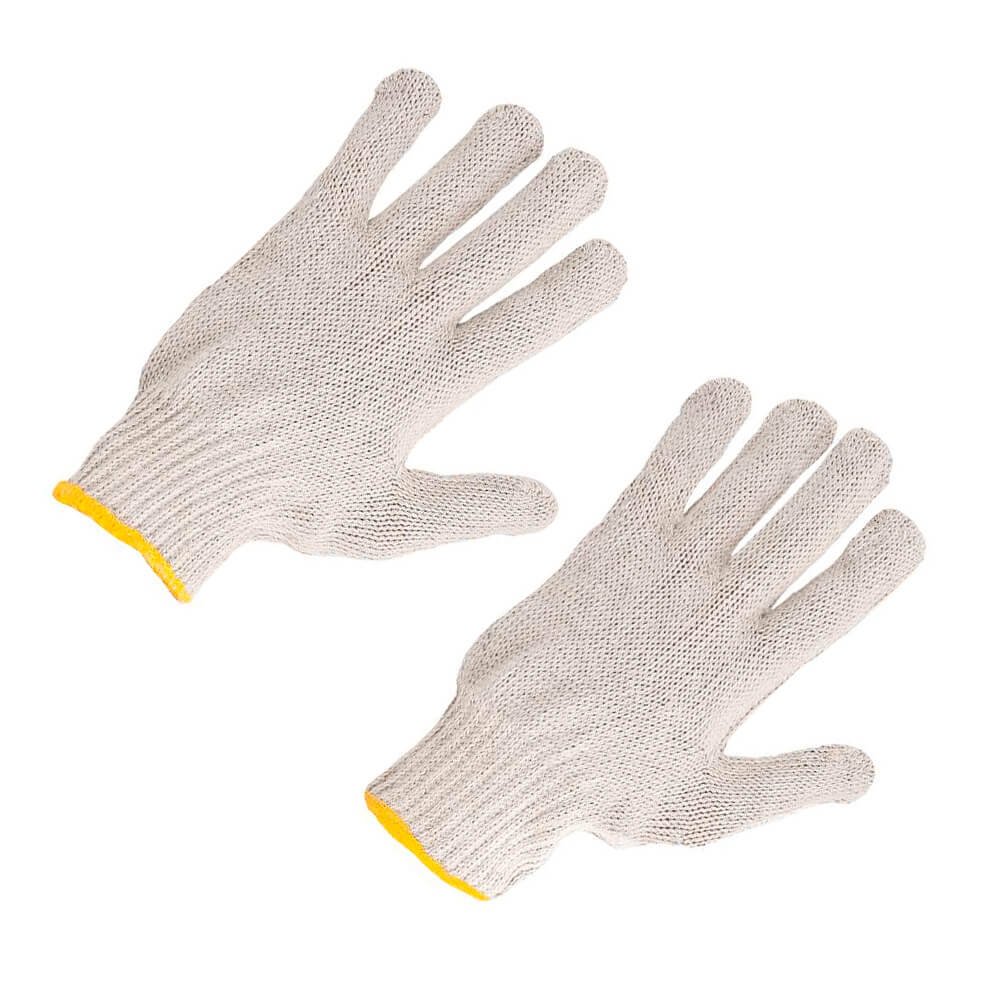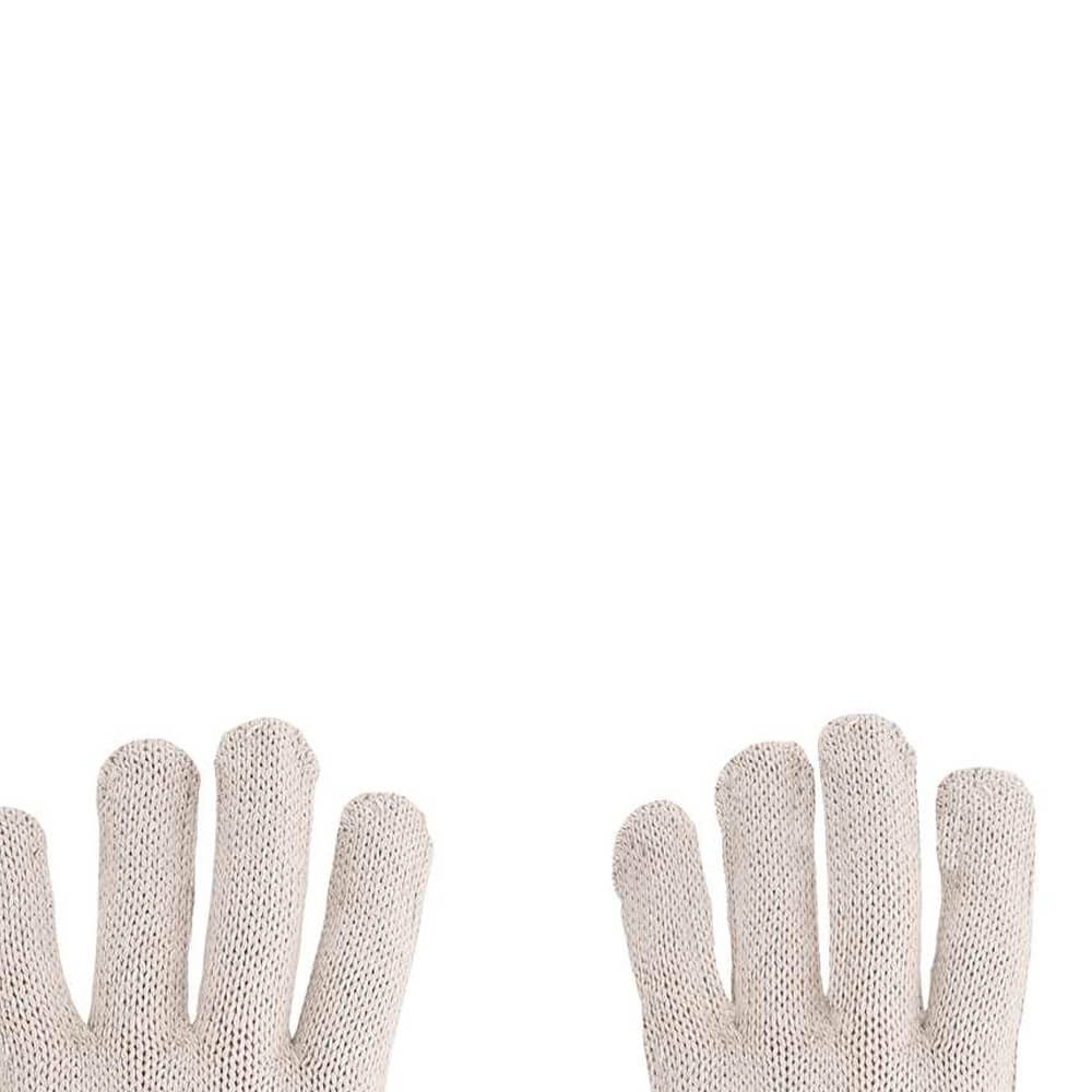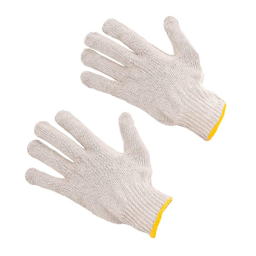 Luva de segurança confeccionada em malha com quatro fios de algodão, acabamento em overloque e punho com elástico.
