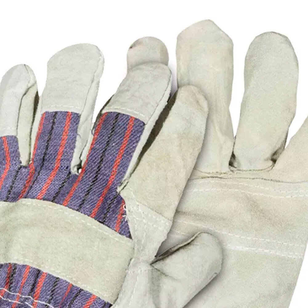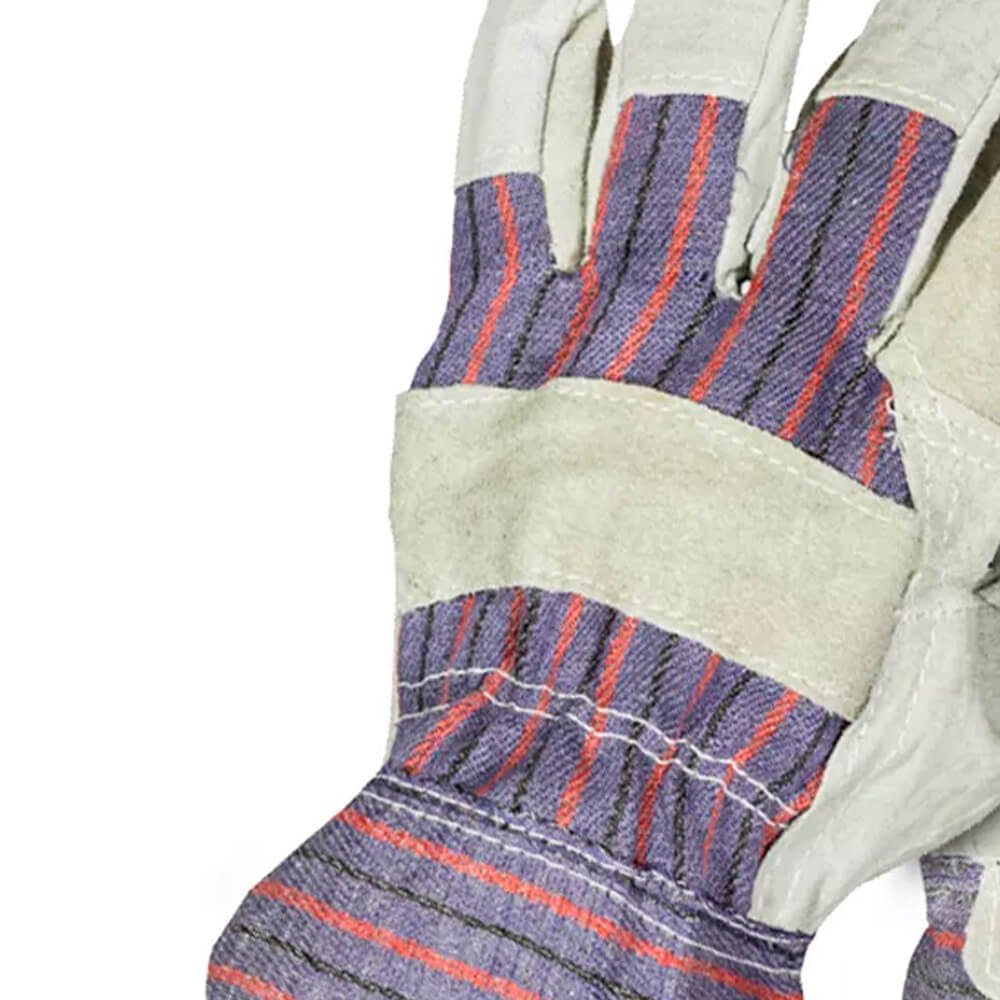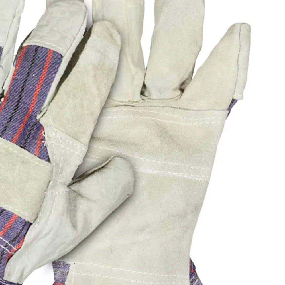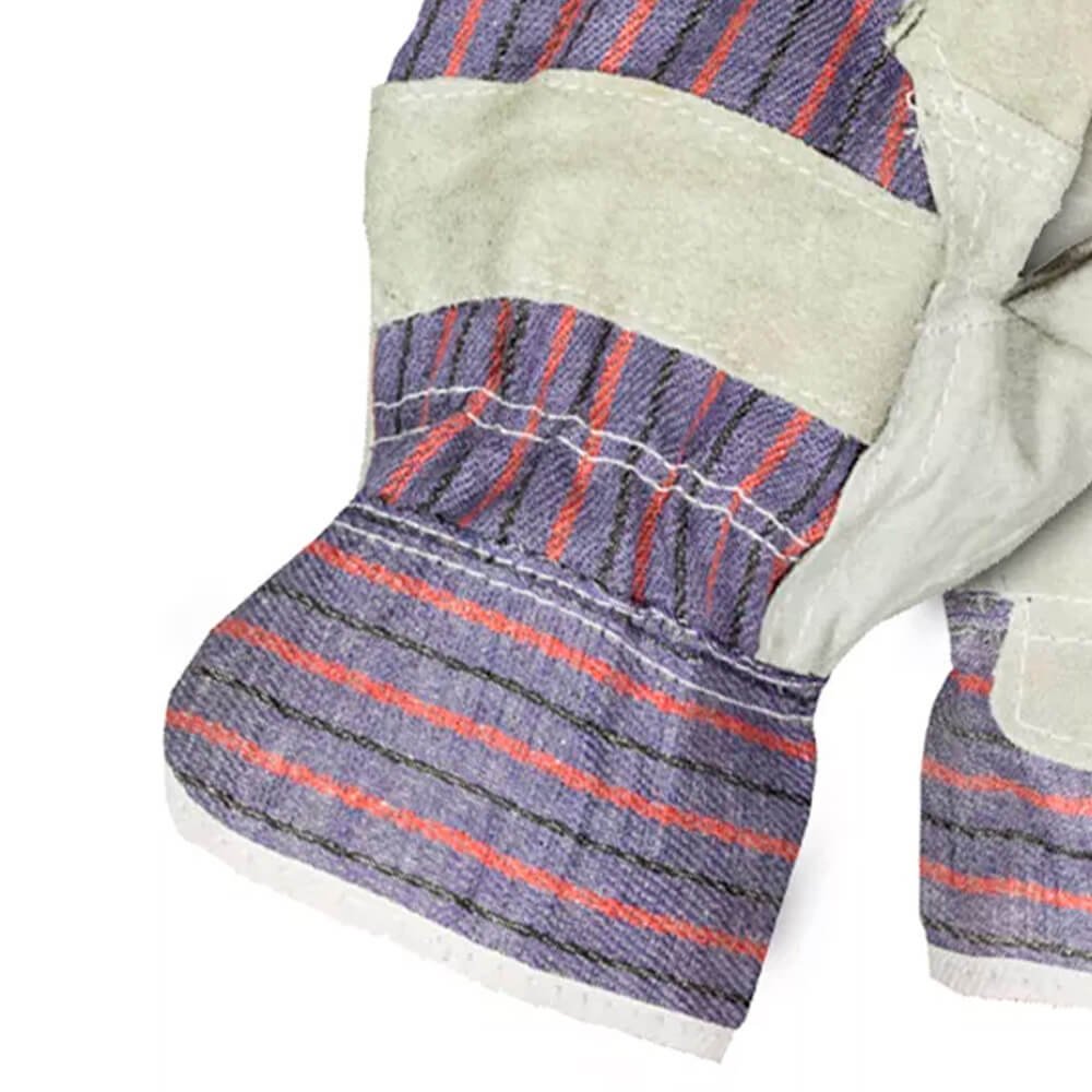 Luva de segurança confeccionada em raspa na face palmar, dedos e unheiras. Dorso e punho em lona. Tira de reforço externo em raspa no dorso. Elástico embutido no dorso.
