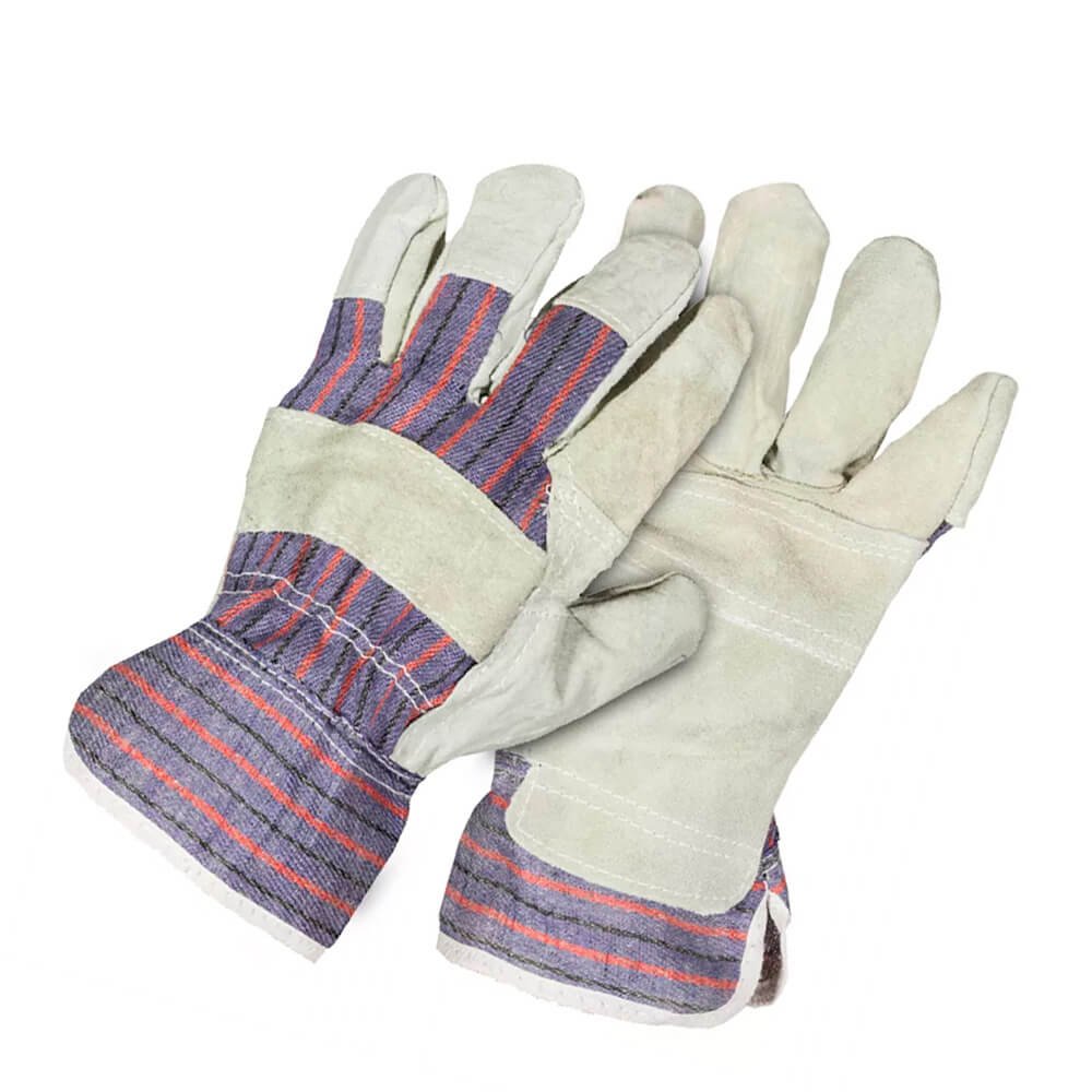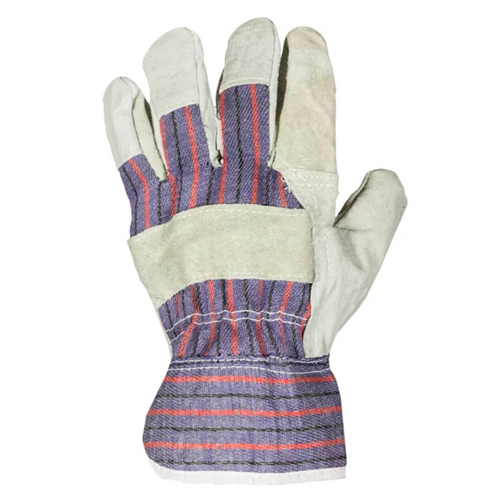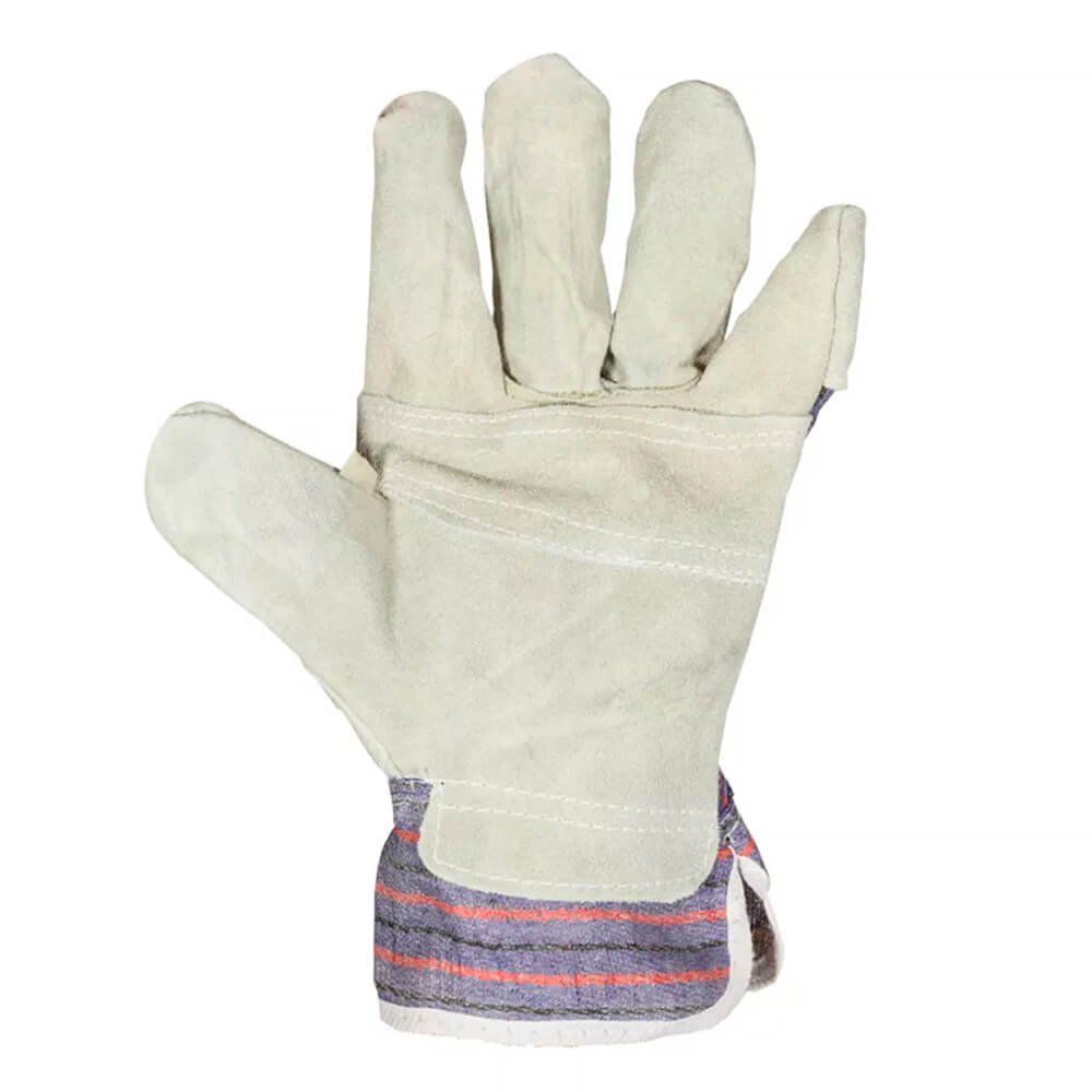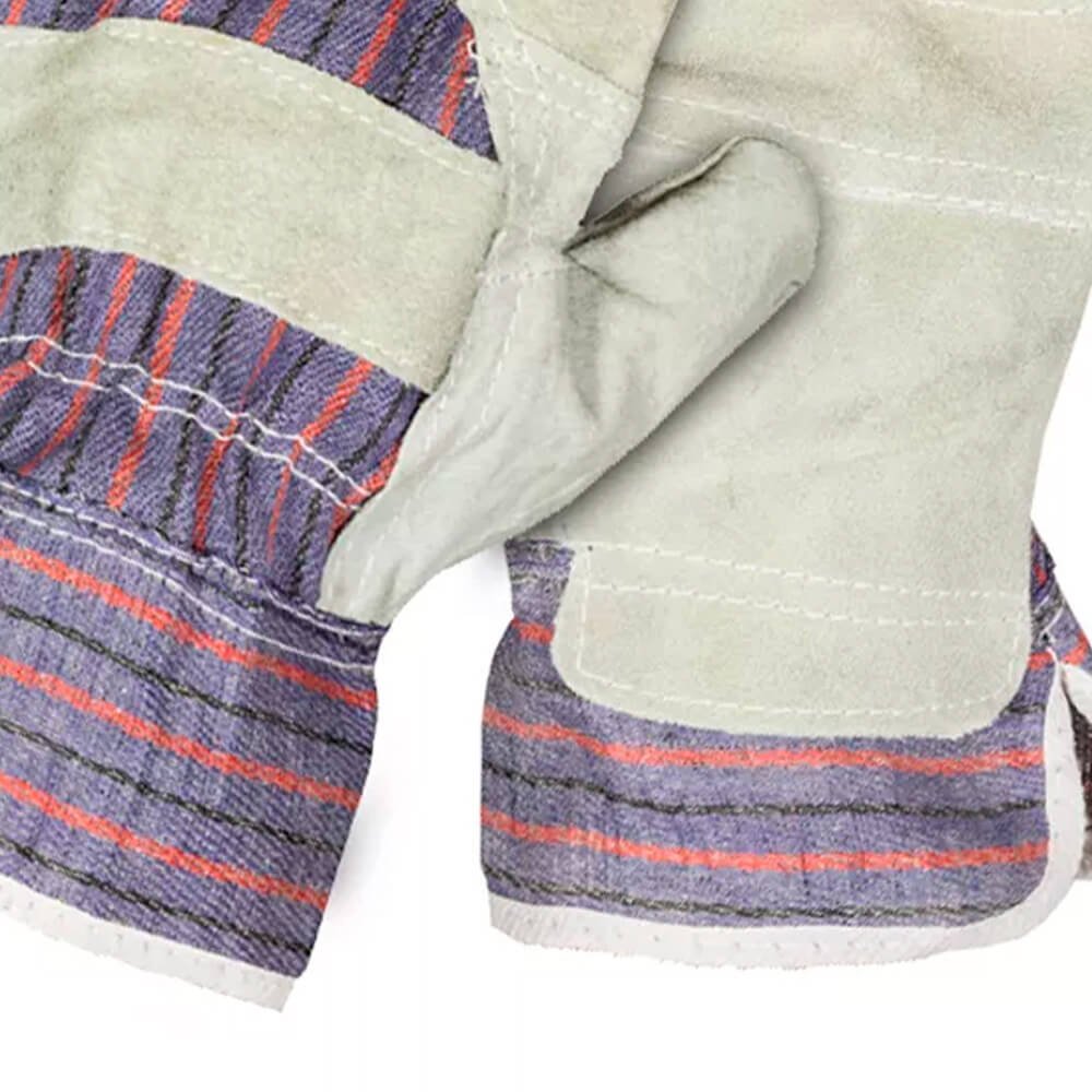Luva de segurança confeccionada em raspa na face palmar, dedos e unheiras. Dorso e punho em lona. Tira de reforço externo em raspa no dorso. Elástico embutido no dorso.