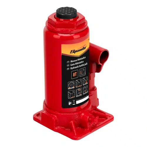 O Macaco Hidráulico Garrafa 8T Sparta, referência 5032455, é ideal para elevação de cargas pesadas até 8 toneladas, como veículos e outros equipamentos. Fabricado em material de alta resistência, é uma ferramenta essencial para manutenções e reparos. Conta com altura suficiente para instalação de suportes rígidos sob a carga elevada.