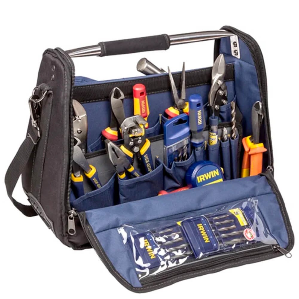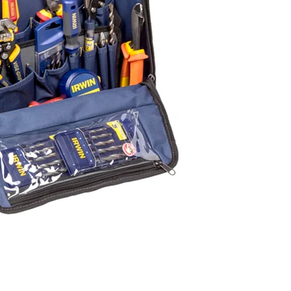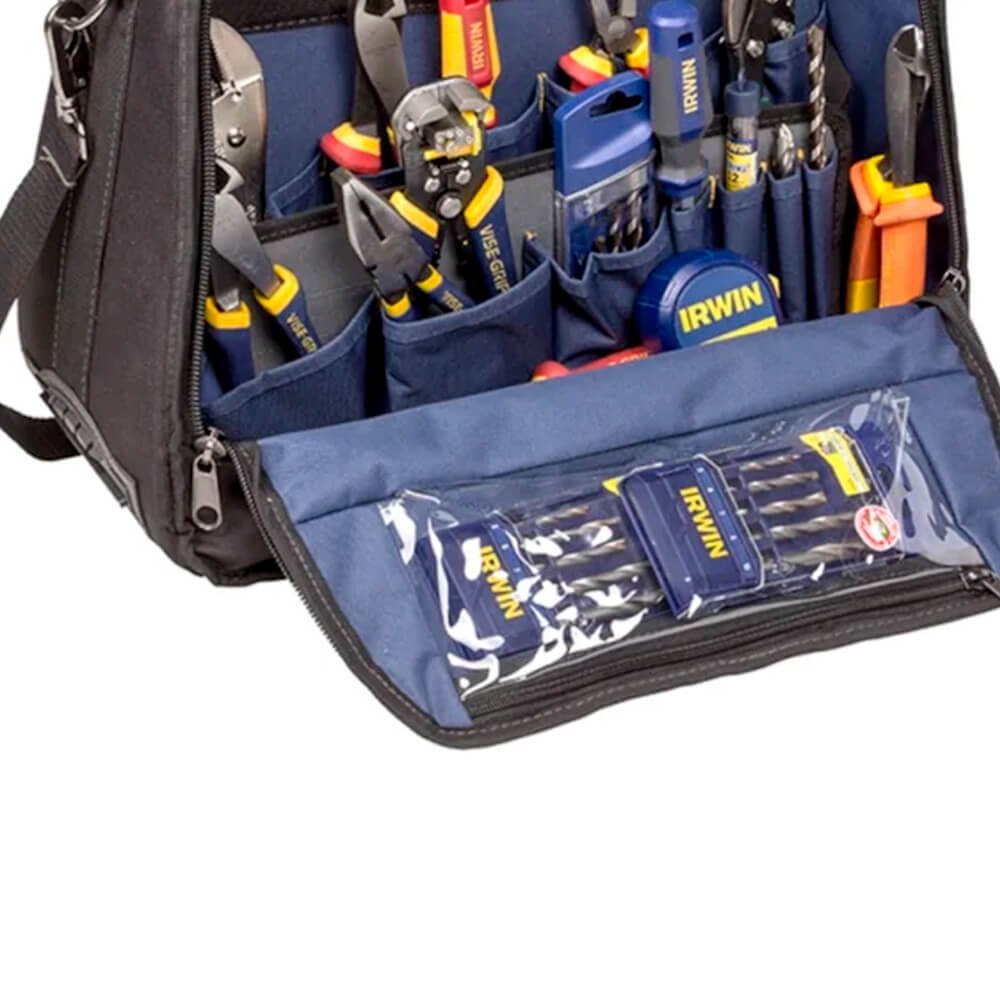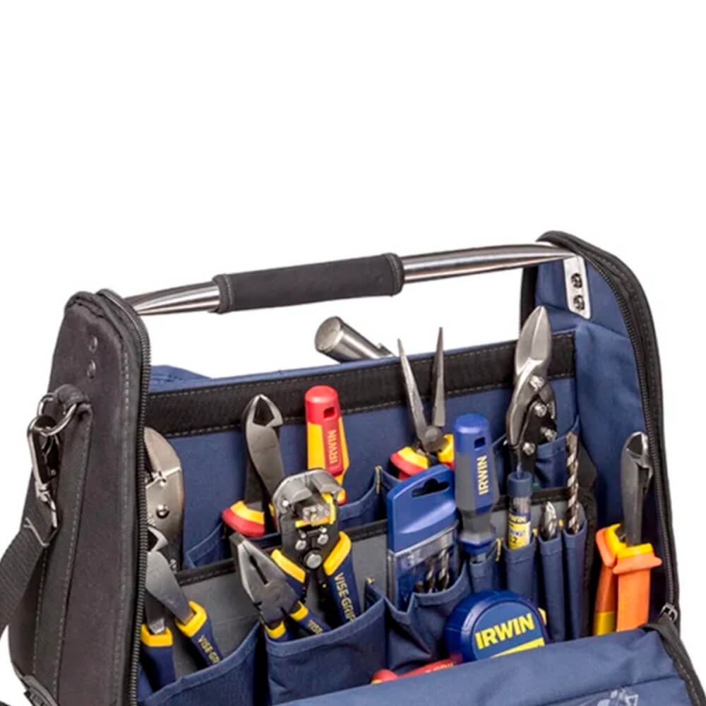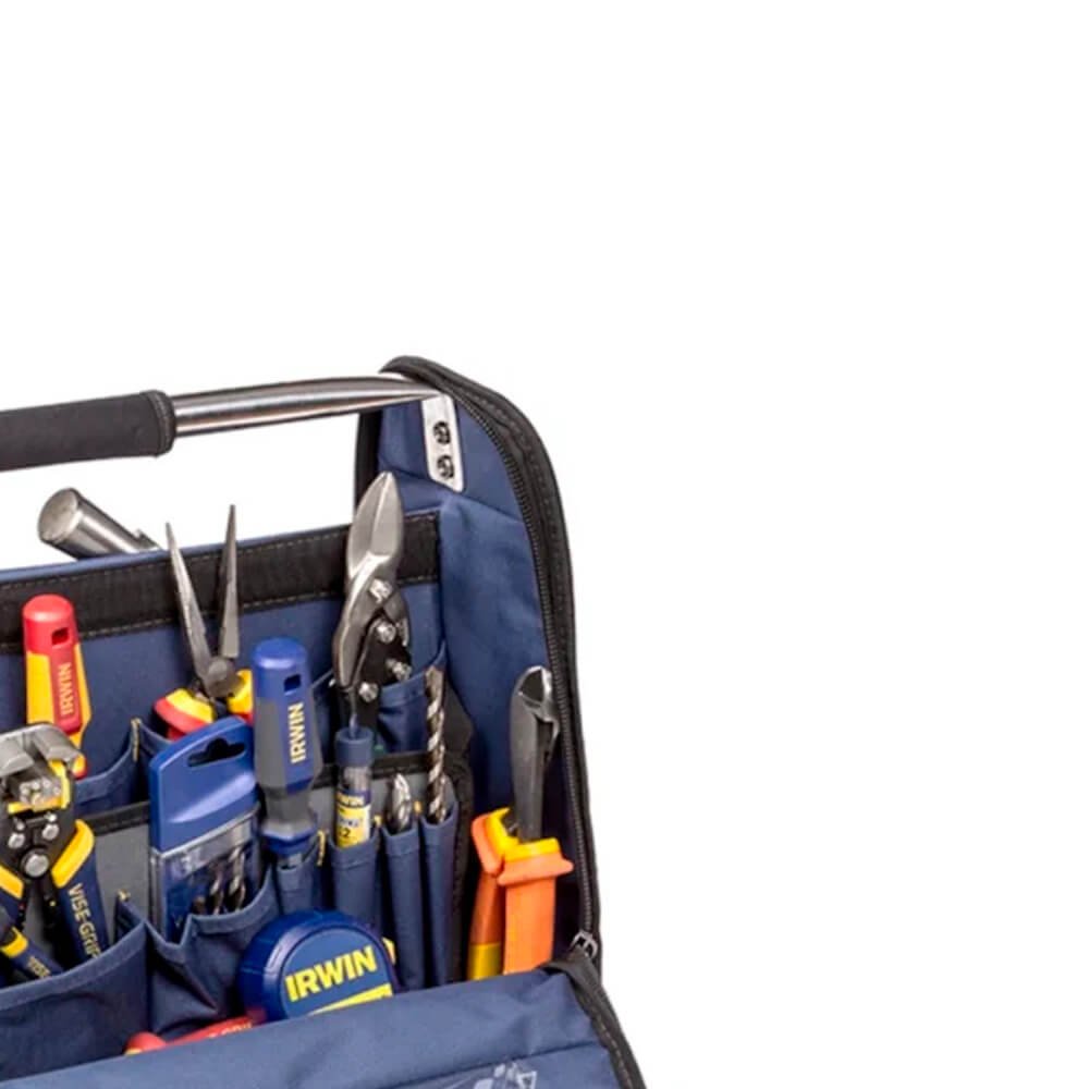 A Mala Robusta Tool Center 18´´ com 23 Compartimentos Internos mais 19 Bolsos Estrutura Interna em Aço IRWIN IW14080 possui uma alça para auxiliar o transporte e divisórias melhorando sua organização, proporcionando maior segurança e agilidade na hora do manuseio. Feita com tecido resistente com um ótimo acabamento, sendo uma excelente opção pra quem procura qualidade e custo benefício;