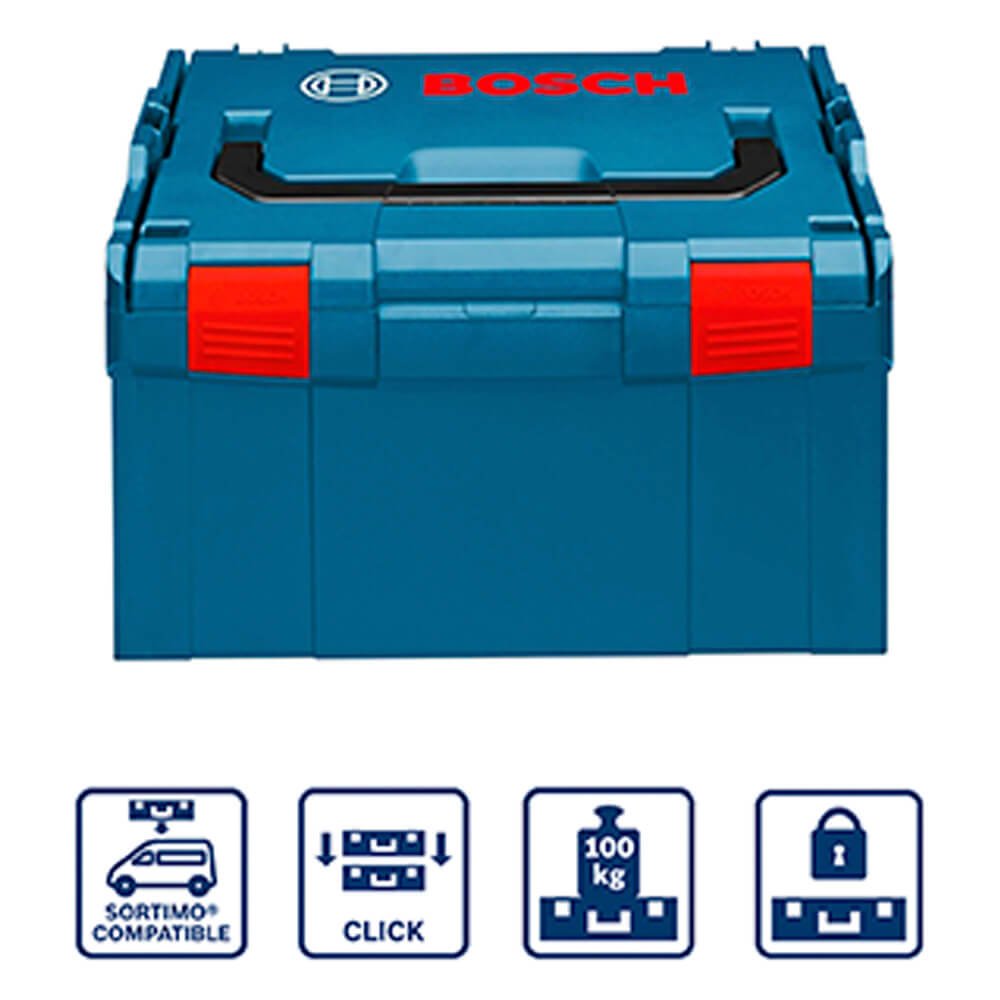 A maleta de transporte Bosch L-BOXX 238 possui novo design, agora ainda mais prática e acessível! É ideal para organizar e transportar suas ferramentas e acessórios. Além disso, é super robusta para suportar os impactos do dia a dia e vem com o sistema de click para você encaixar uma L-BOXX na outra.