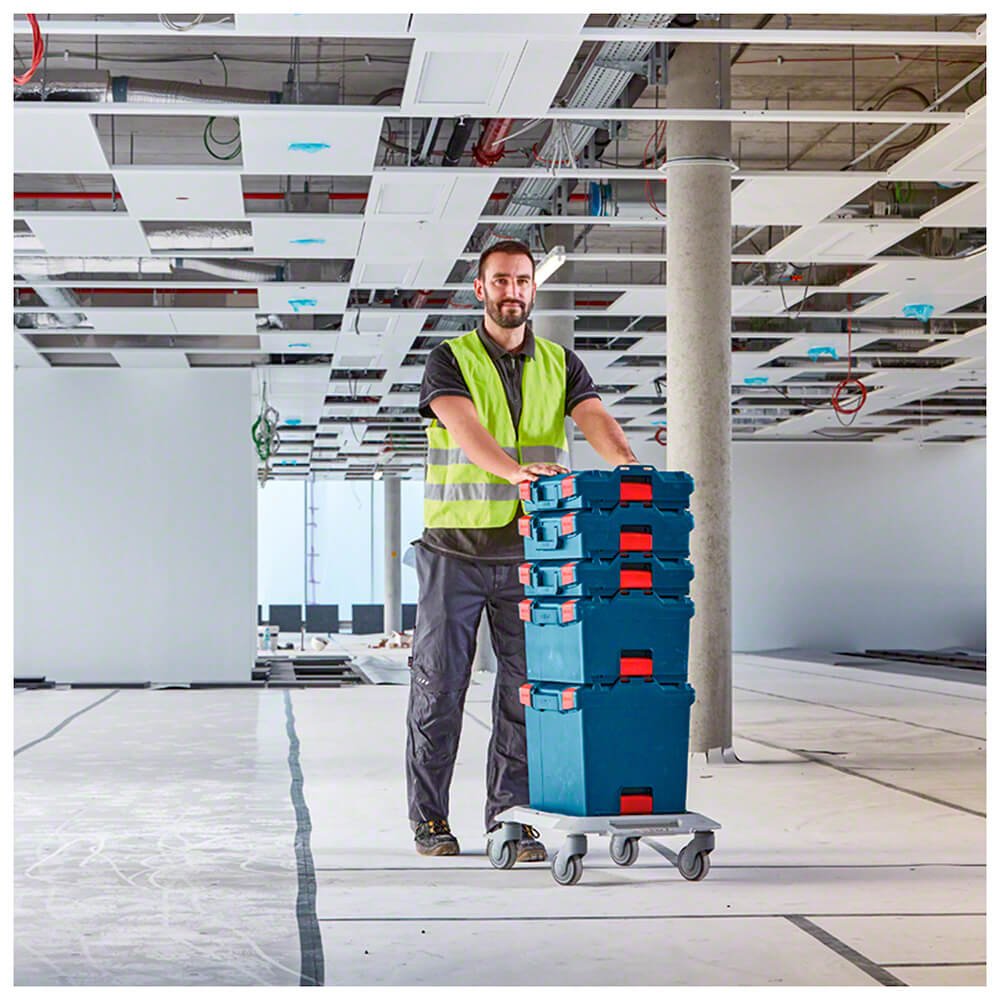 Suporta até 100kg: A Maleta de Transporte Bosch LS-BOXX 306 tem tampa que pode suportar uma carga de até 100 kg.
