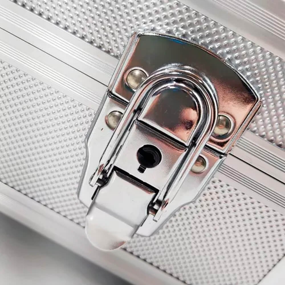 Uma solução versátil e resistente para a organização de suas ferramentas preciosas. Esta maleta oferece espaço generoso e flexibilidade para atender às suas necessidades de armazenamento. Construção em Alumínio Robusto. Construída em alumínio de alta qualidade, esta maleta é projetada para durar. Sua resistência a impactos e seu acabamento durável garantem a proteção das suas ferramentas contra danos e desgaste ao longo do tempo.