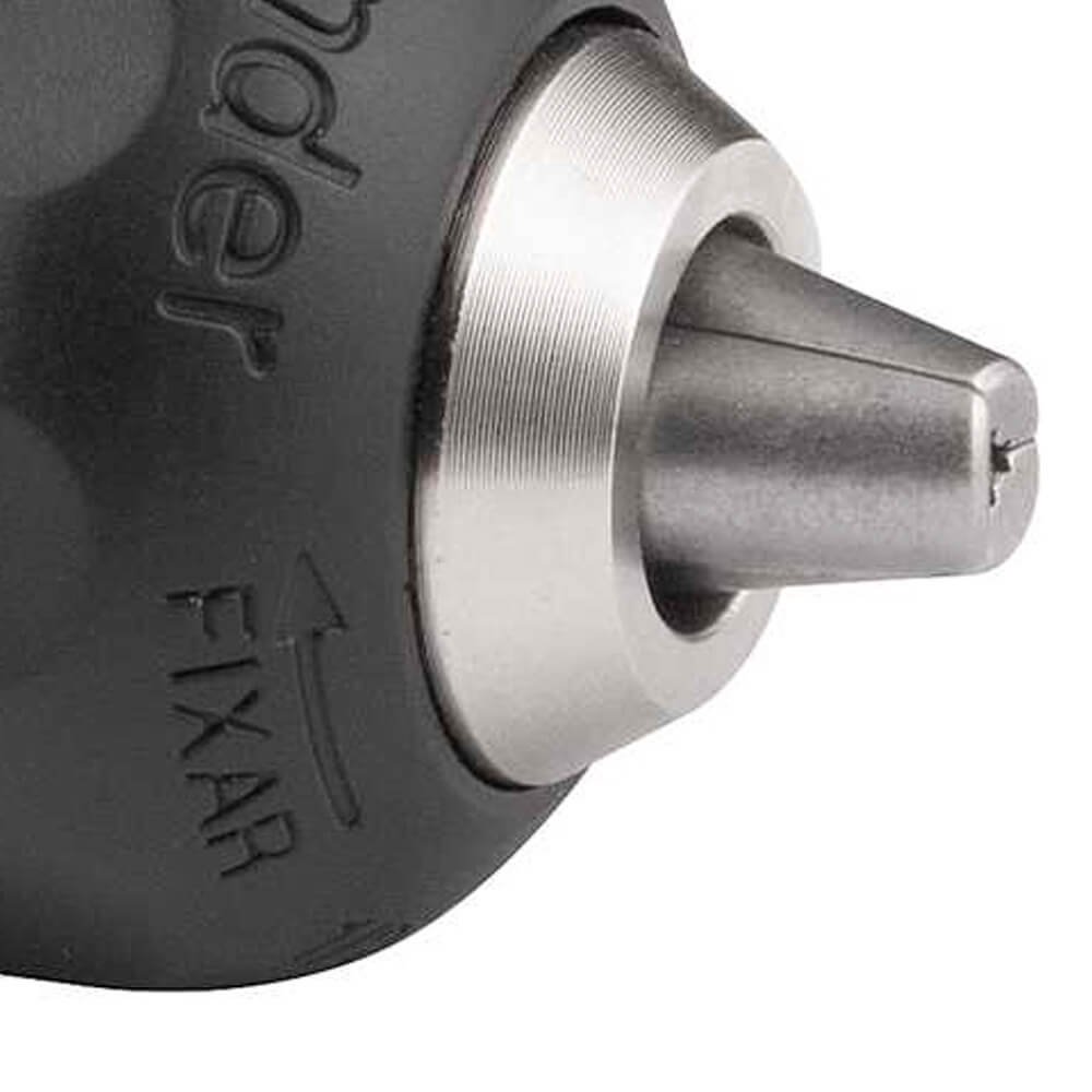 Indicado para furadeiras manuais e parafusadeiras a bateria. Ao adaptar este mandril em martelos ou marteletes, nunca utilizar na função com impacto.