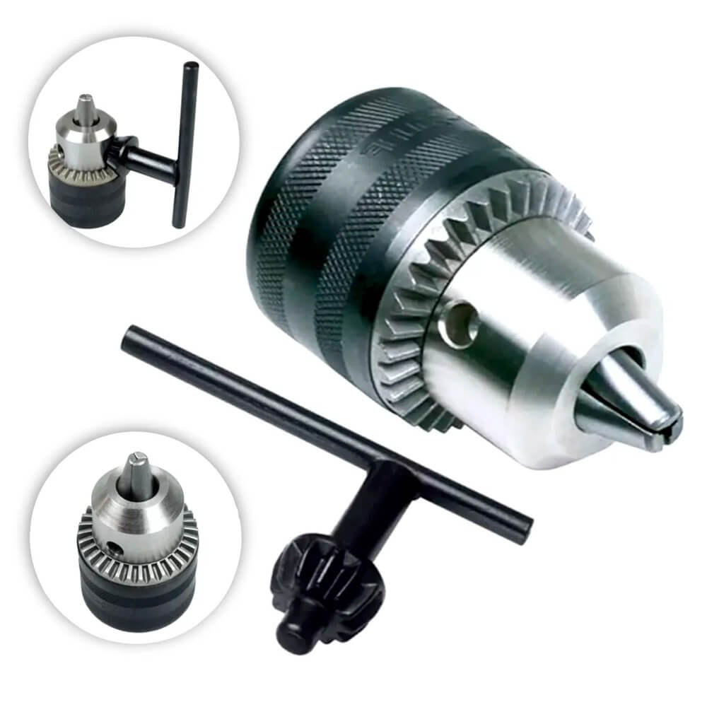 Utilizado na fixação de brocas, acoplado a furadeiras manuais e máquinas operatrizes em geral para execução de operações de furação. Ideal para aço, alumínio, madeira com brocas de haste cilíndrica.