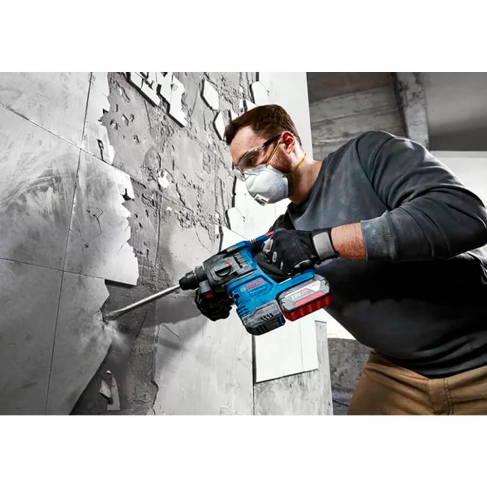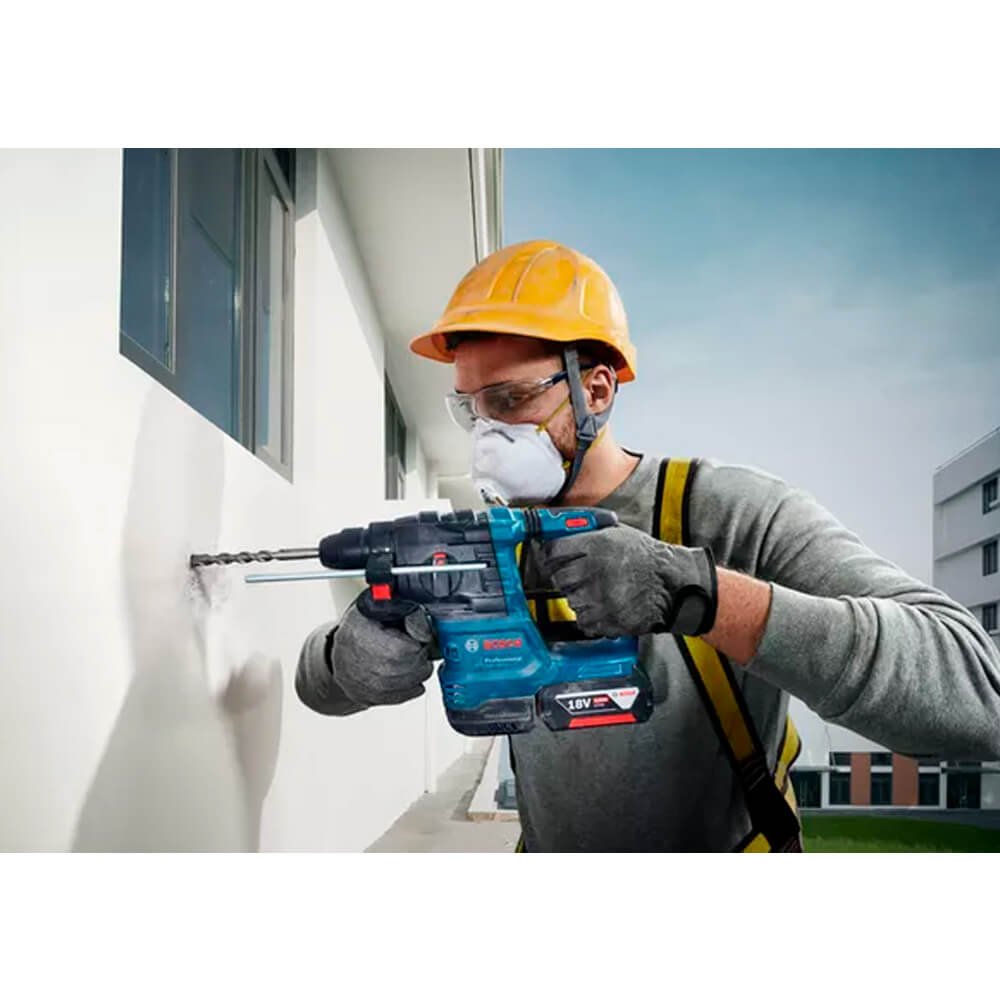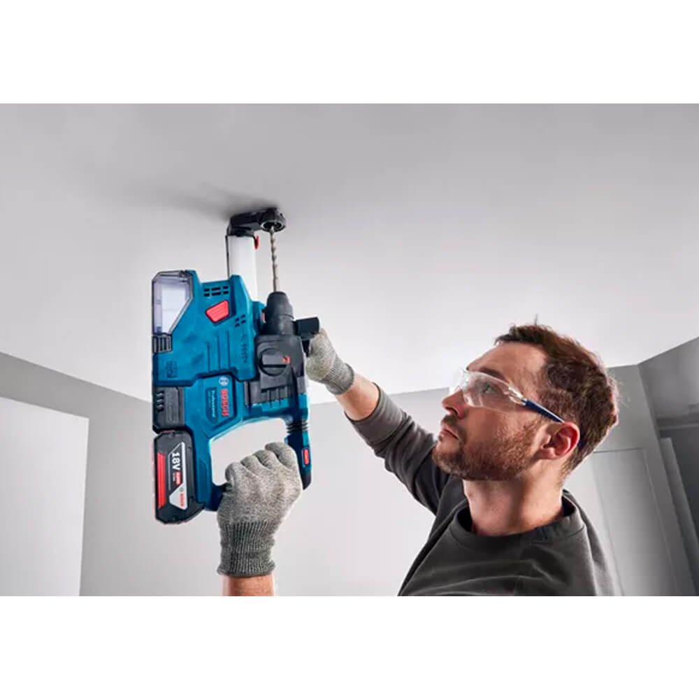 O GBH 185-LI Professional está repleto de potência e características, elevando a experiência de perfuração para um nível seguinte, com eficiência, segurança e controle extras. Mais furos são feitos por bateria totalmente carregada e potência estável fornecida por seu potente motor sem escovas de 18V da Bosch, combinado com velocidade constante. Inclui maior segurança contra bloqueios acidentais e exposição reduzida a vibrações devido ao KickBack Control e Vibration Control, respectivamente. Ele também contribui para uma condição de trabalho sem poeira através de seu aspirador Auto Power GDE 12 acoplável.