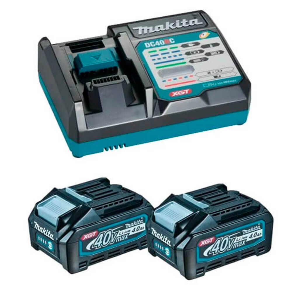 2 baterias 40V 4.0Ah, carregador rápido e maleta MAK-PAC.