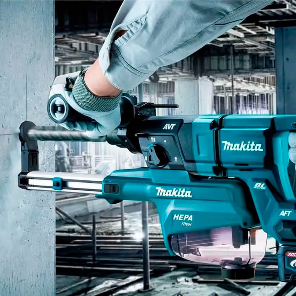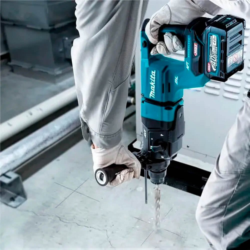 O Martelete Combinado 40V SDS-Plus XGT Makita é ideal para perfuração de impacto e perfuração normal em tijolo, concreto e pedra, assim como para trabalhos de entalhamento. Também pode ser utilizado para perfuração sem impacto em madeira, metal, cerâmica e plástico. Projetada com a tecnologia XGT, para as aplicações ainda mais pesadas. Conta com motor BL, sem escovas de carvão, eliminando a necessidade de manutenção devido à inexistência das escovas. Além disso, a produção de energia é mais eficiente do que no motor com escova por não haver perdas causadas por fricção, permitindo diminuir a corrente elétrica, gerando menos calor e aumentando o volume de trabalho em uma carga total de bateria. Seu sistema de absorção dinâmica de vibração AVT realiza a troca de pressão de ar entre o pistão da ferramenta e o contrapeso, diminuindo consideravelmente a vibração da ferramenta.