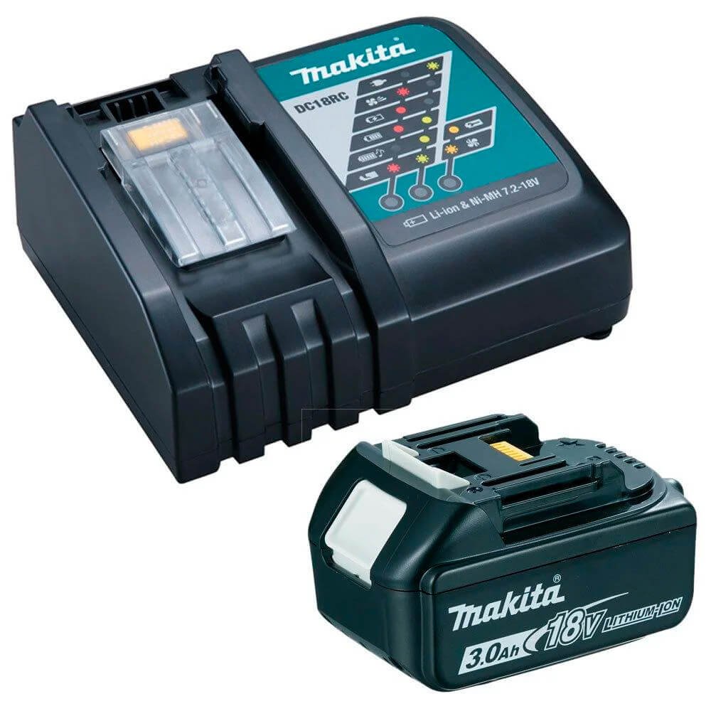 - 2 baterias 18V 3,0 Ah, carregador rápido, punho lateral, limitador de profundidade e maleta.