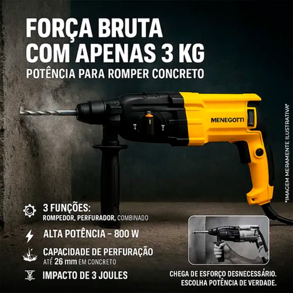 Martelete Perfurador/ Rompedor MMR800 26mm 3J 800W 220V - Menegotti