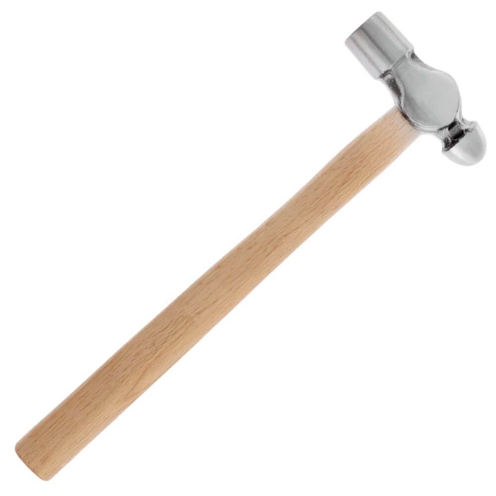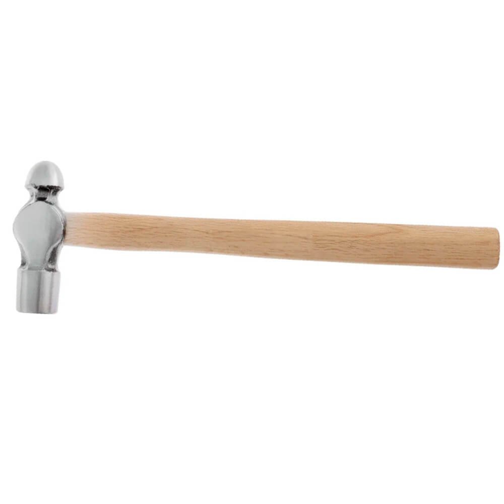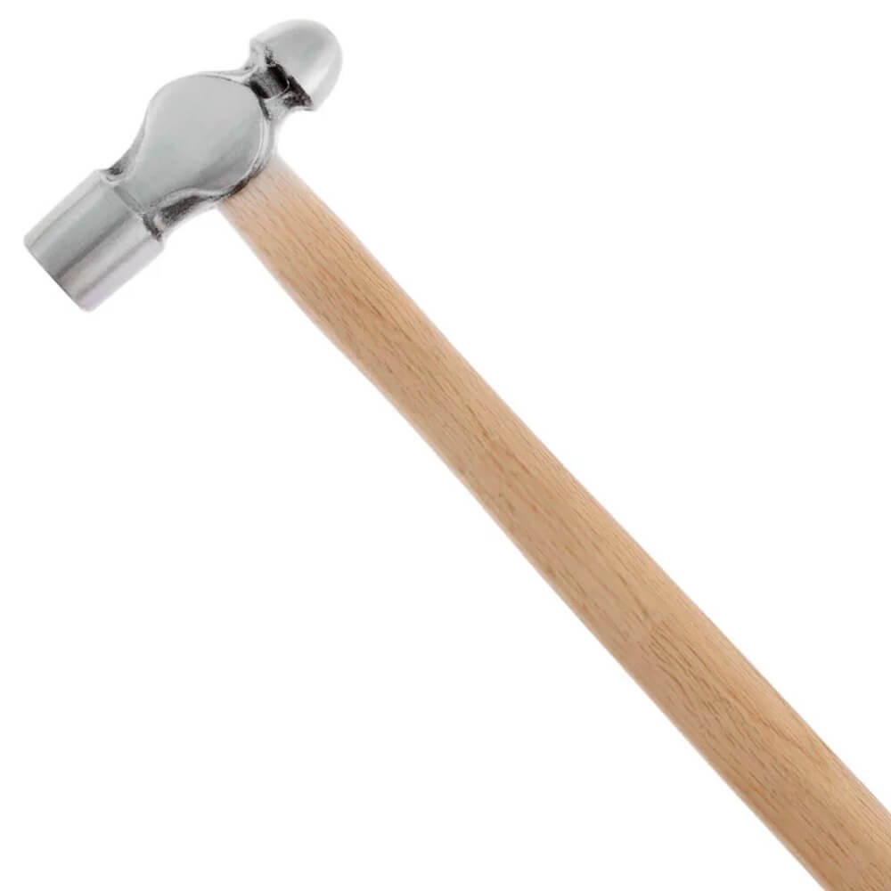 O martelo bola possui cabeça forjada e temperada com aço especial com cabo de madeira;