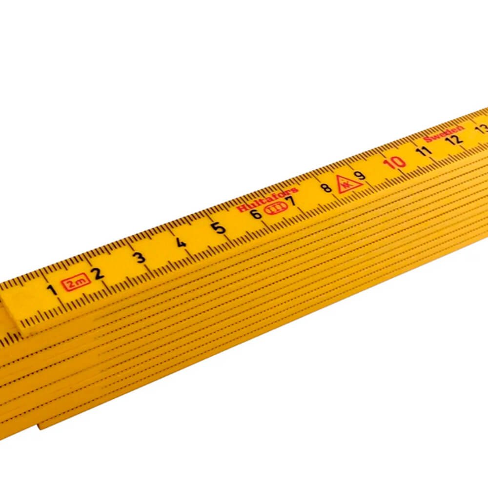 O metro tem marcação de medida nos dois lados, e a escrita em sua superfície é toda realizada em baixo relevo, o que permite maior durabilidade da escrita antes do desgaste, e mesmo quando desgastar ainda será possível realizar a leitura, caso necessário.