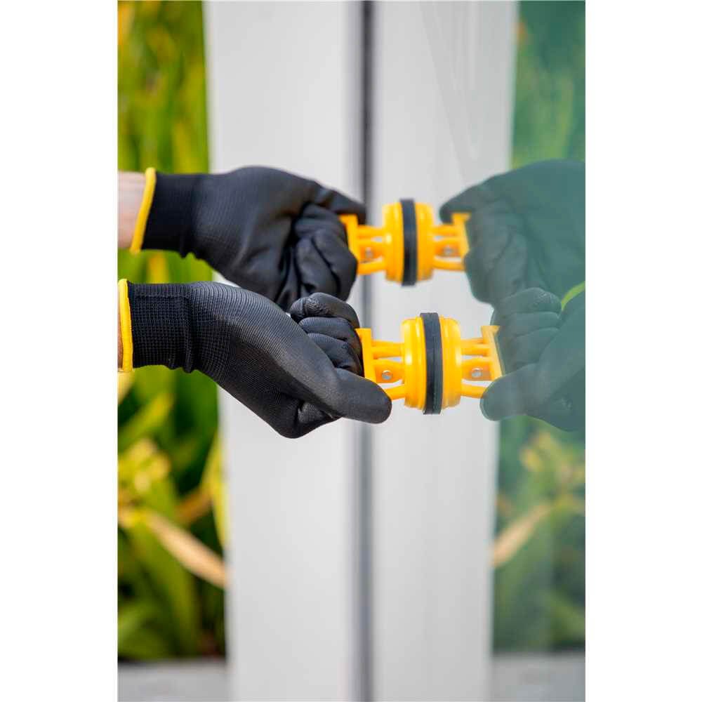 Indicada para elevar e transportar peças planas com superfície lisa, como: vidros, espelhos, cerâmicas, entre outras. A superfície tanto da ventosa quando da peça a ser transportada deve estar totalmente limpa, isenta de umidade e óleo a cada uso. Tempo máximo de fixação da ventosa na peça: 15 minutos. Pressione bem a ventosa contra a peça para correta fixação.