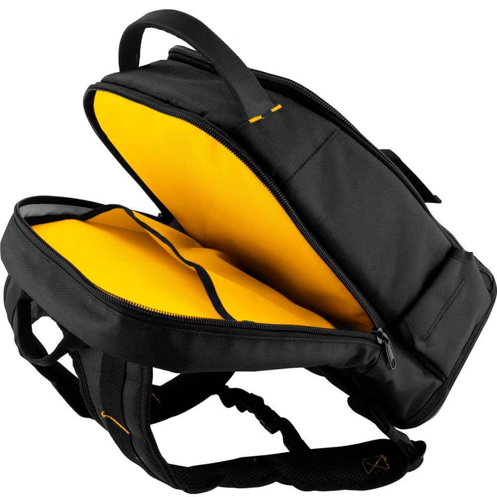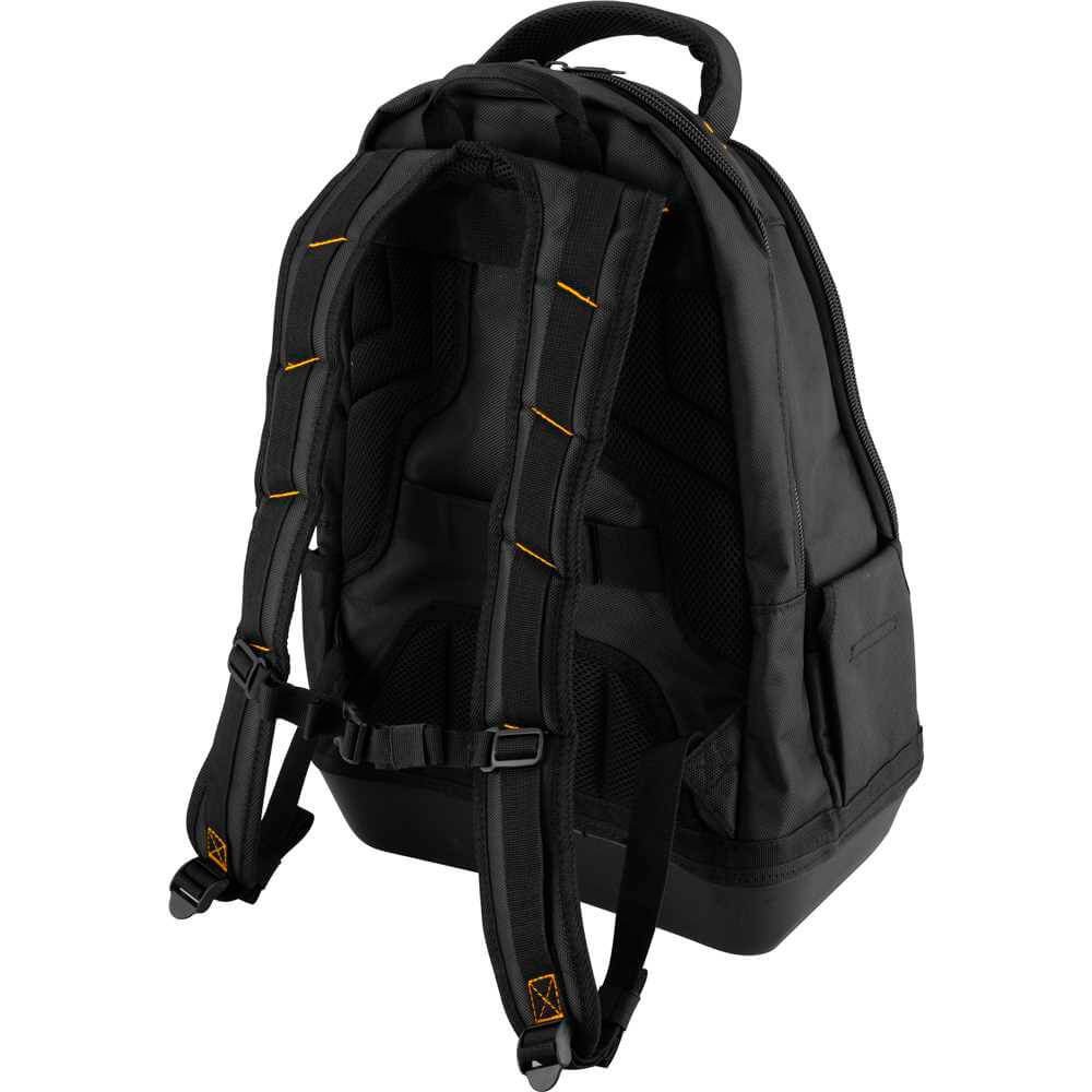 Possui alças almofadadas com costuras reforçadas, duas alças de mão (uma para movimentar a mochila e outra para pendurá-la), apoio para costas almofadado com tecido respirável, cinta peitoral ajustável e base em polipropileno, resistente a impactos e água, garantindo maior durabilidade. Conta ainda com 24 bolsos, sendo 7 bolsos externos e 17 bolsos internos, além de compartimentos para ferramentas com 11 encaixes. Indicada para uso geral.