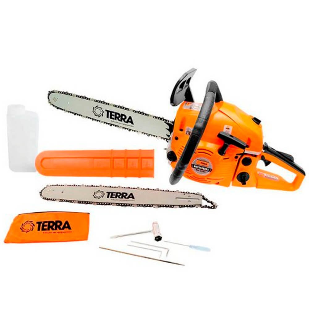 Para quem gosta de jardinagem e deseja uma ferramenta ergonômica, leve, portátil e de fácil manuseio, a Motosserra* TR5200 da Terra Equipamentos de 52 cilindradas 2,5HP é ideal. O equipamento acompanha kit de ferramentas, misturador de gasolina e óleo, correntes e sabres de 18 e 20 polegadas, lima para afiação das correntes e 2 capas de proteção.