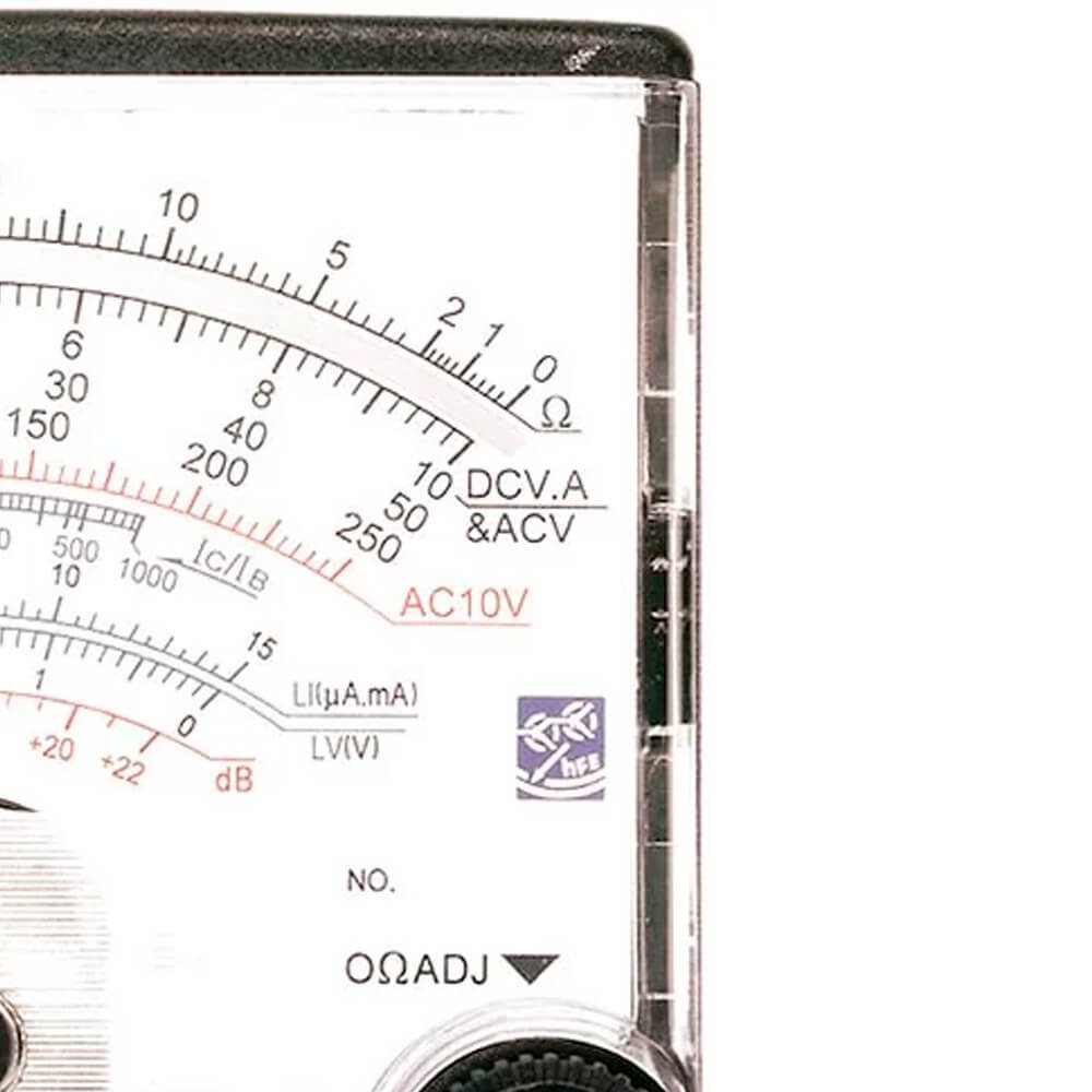 Aplicações: Multímetro voltado para aqueles que não abrem mão da velocidade de resposta e do consumo de bateria em medições de tensão ou corrente. Mede tensão AC e DC, corrente DC, resistência, decibel, teste de fuga de transistores e Iceo.