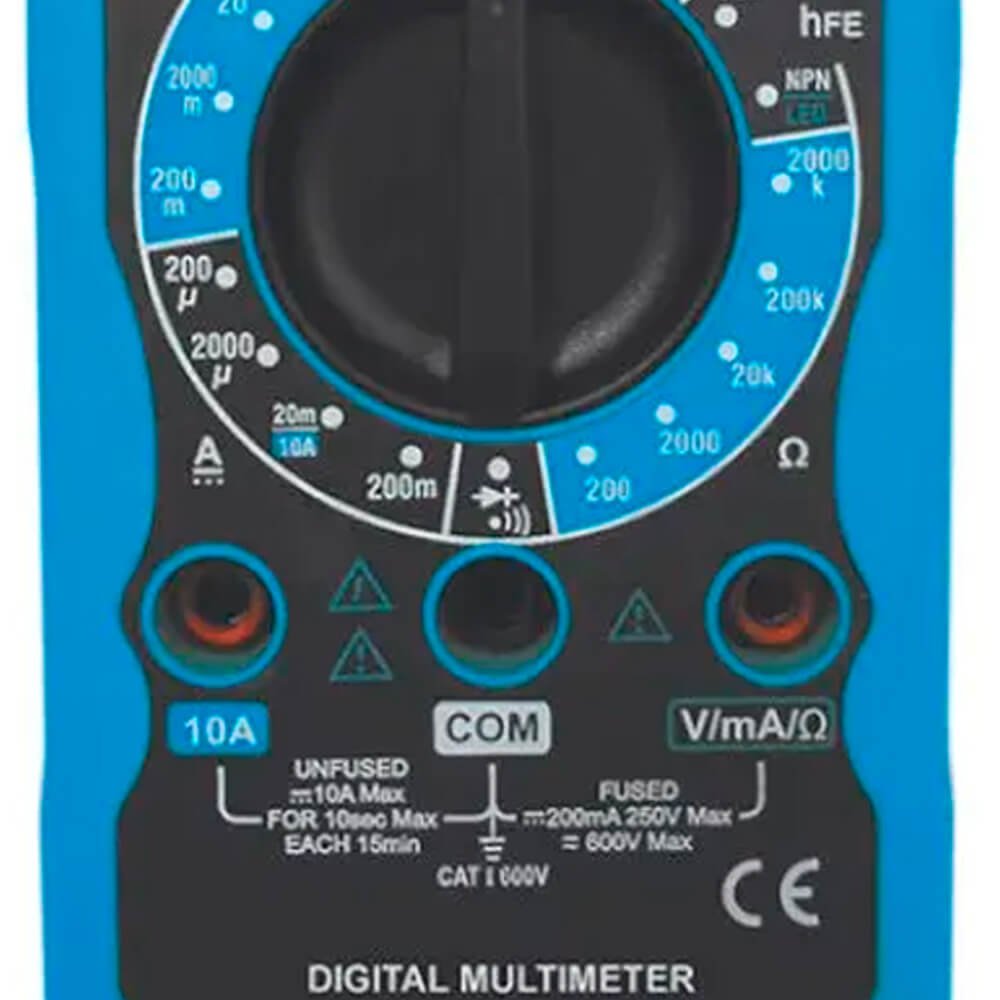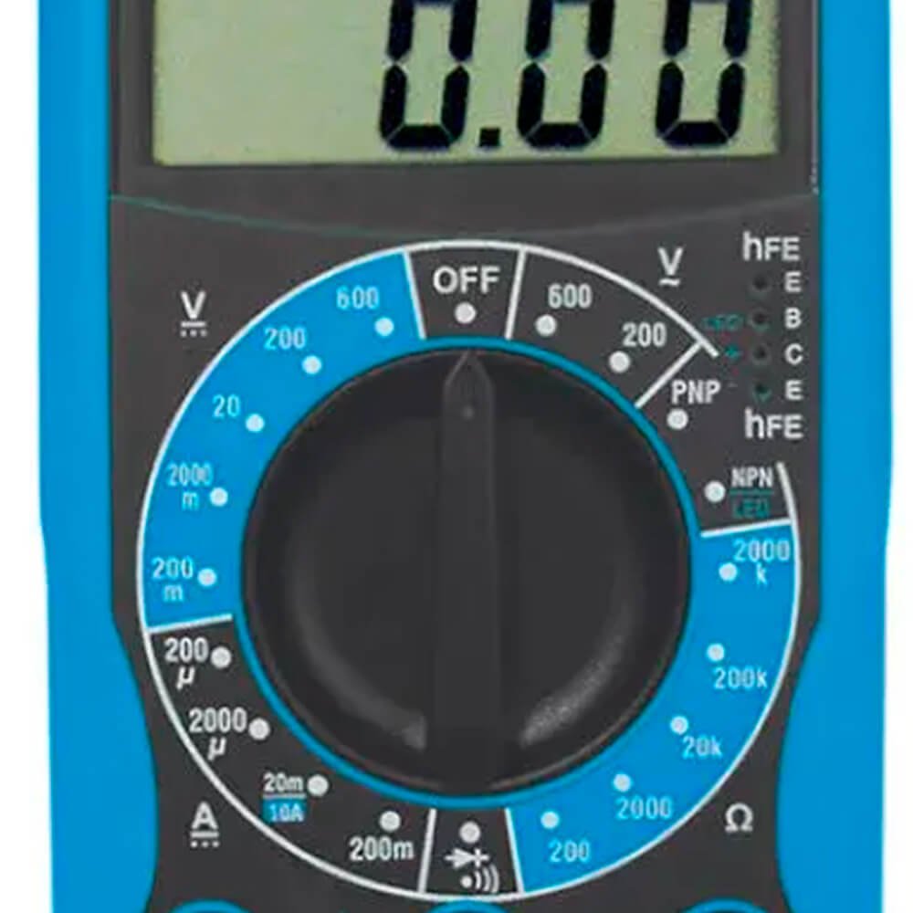 Aplicações: Multímetro de baixo custo e dimensões reduzidas com diversos recursos para aplicações bancadas, hobby. Faz medições de tensão DC e AC, corrente DC, resistência, teste de diodo e transistor.