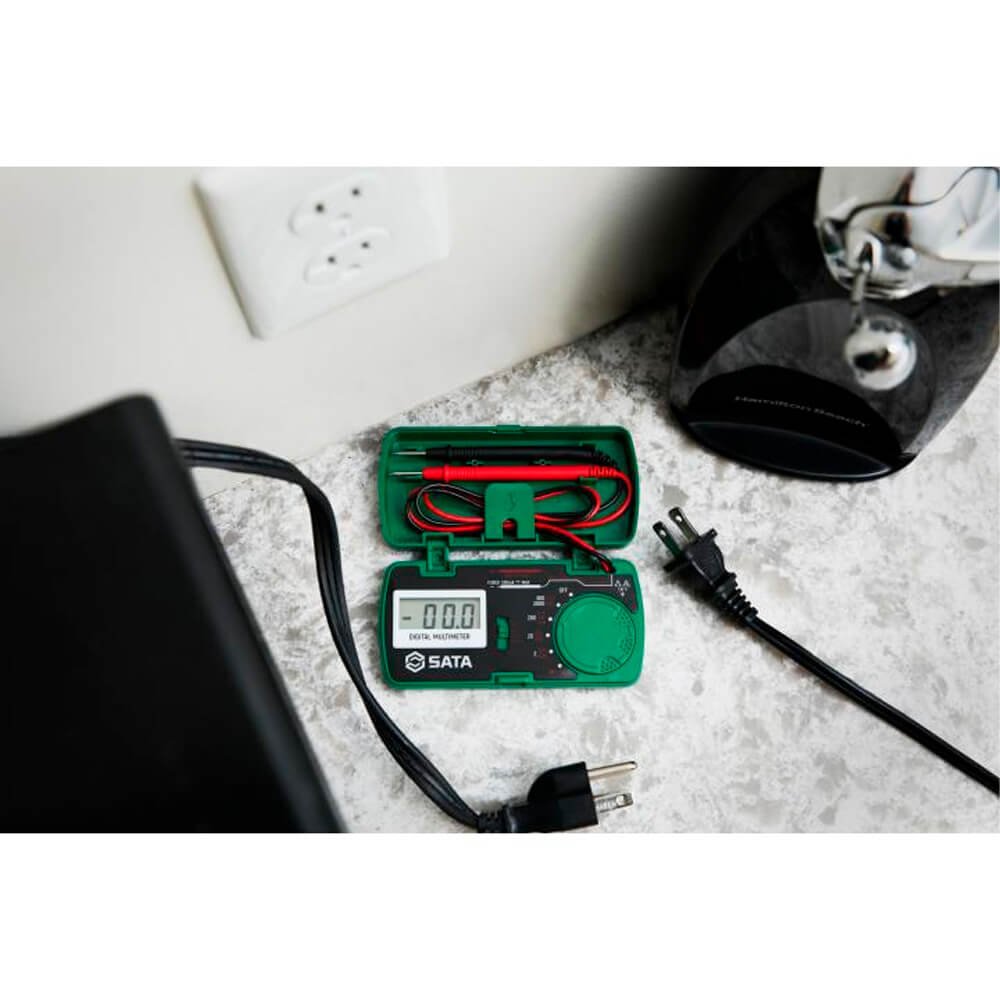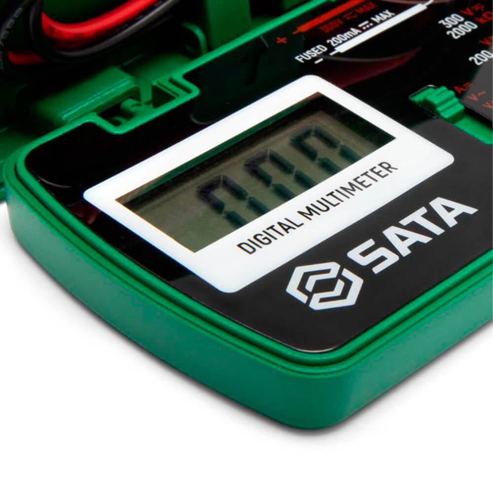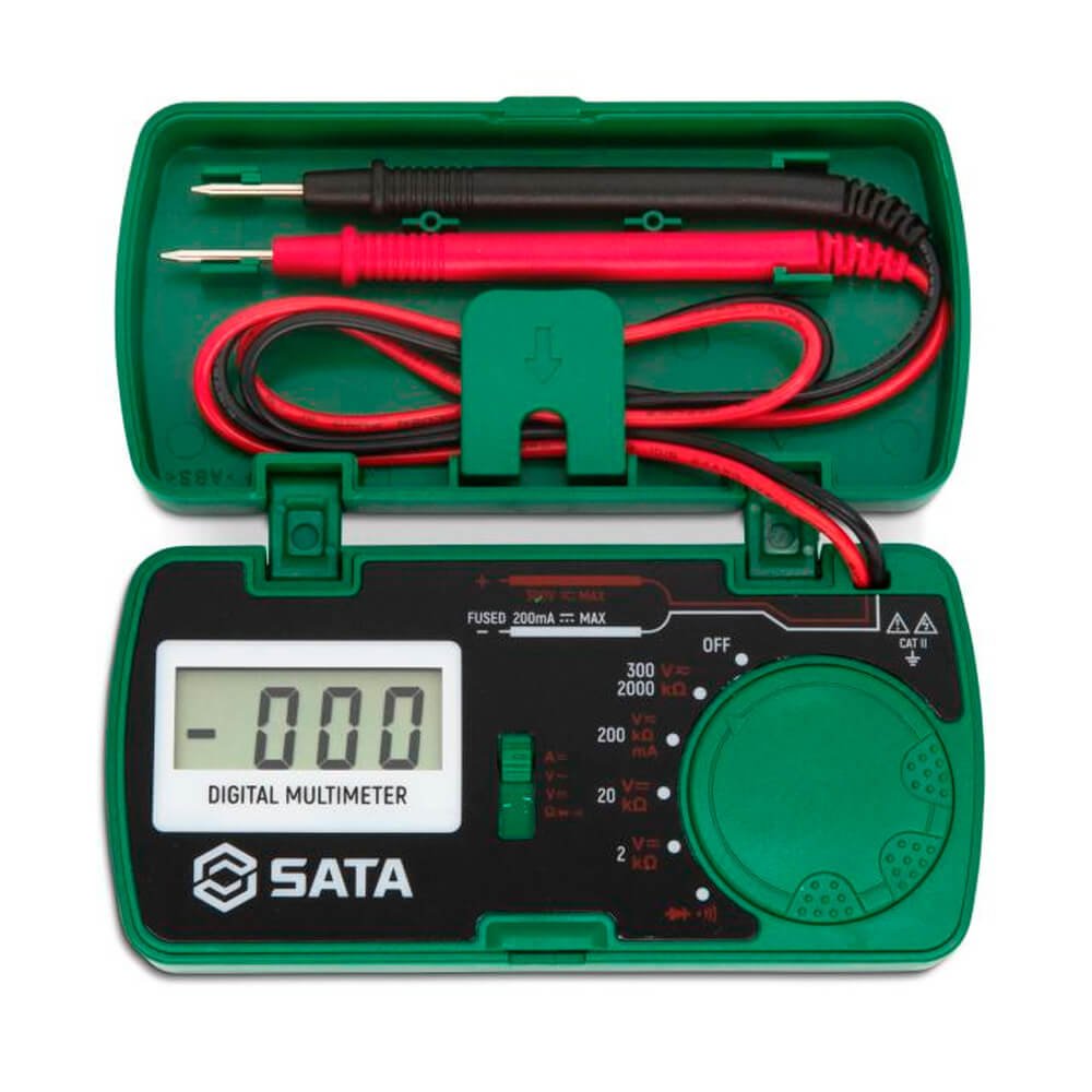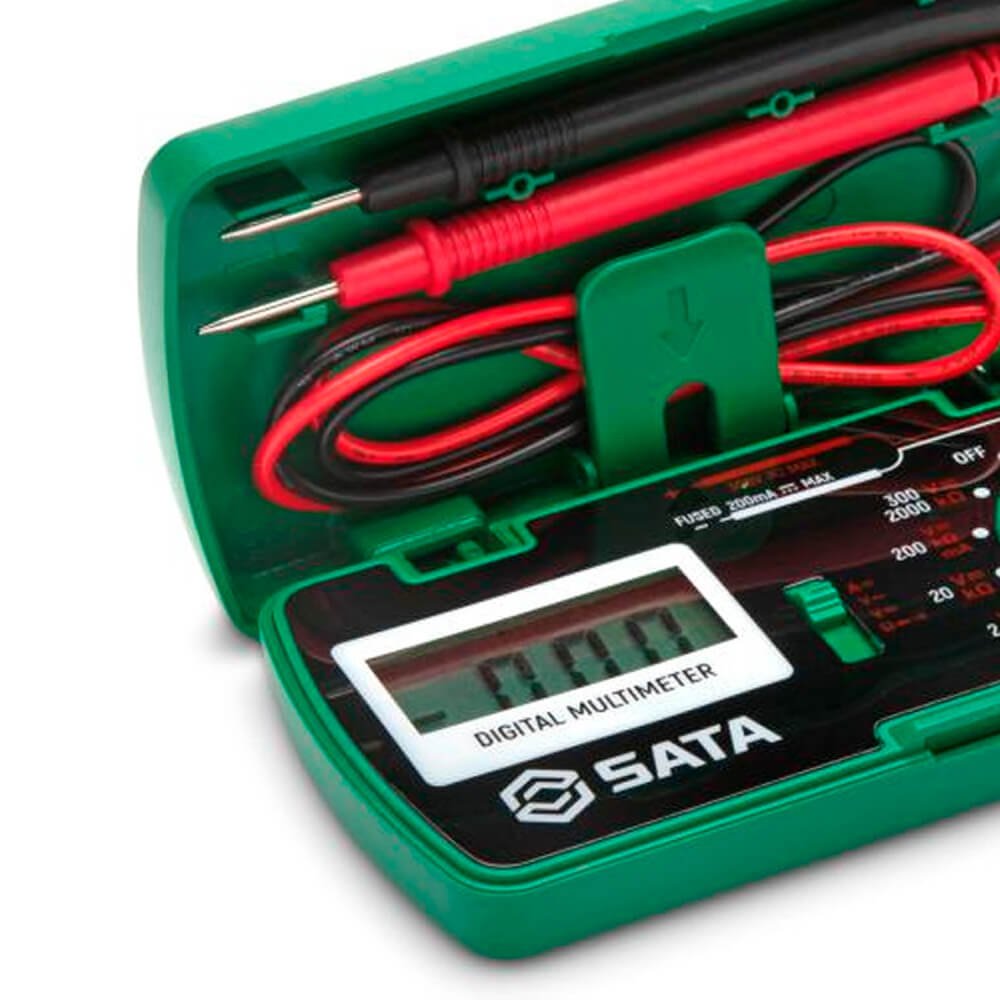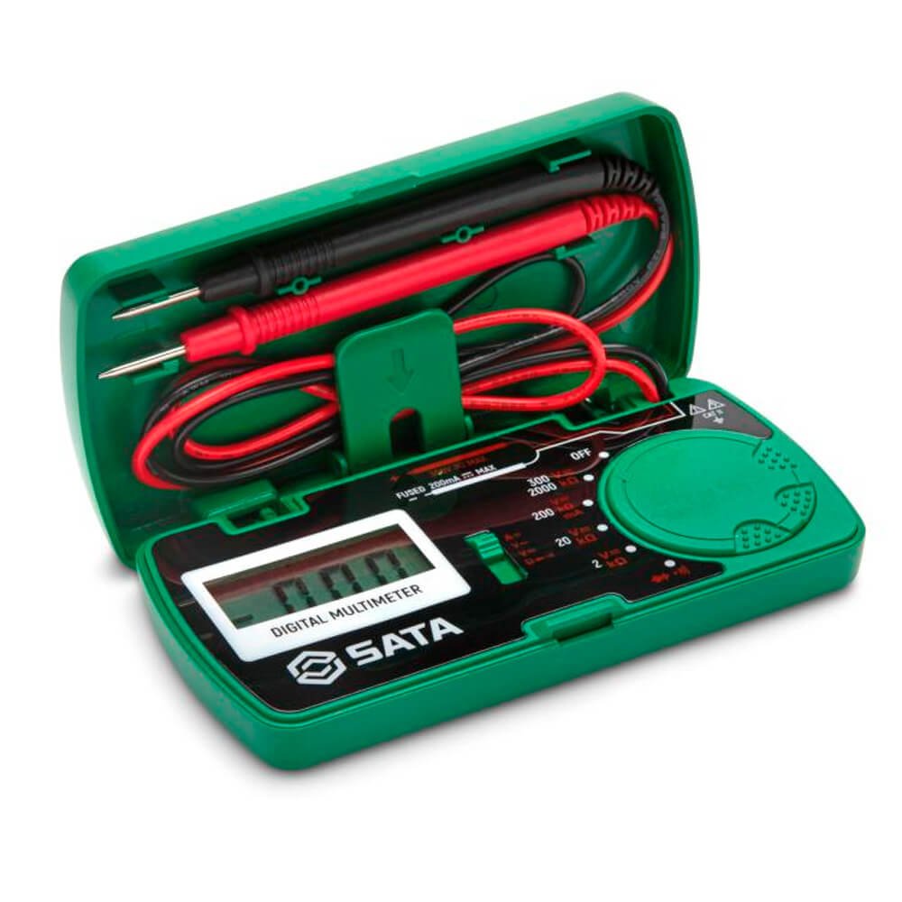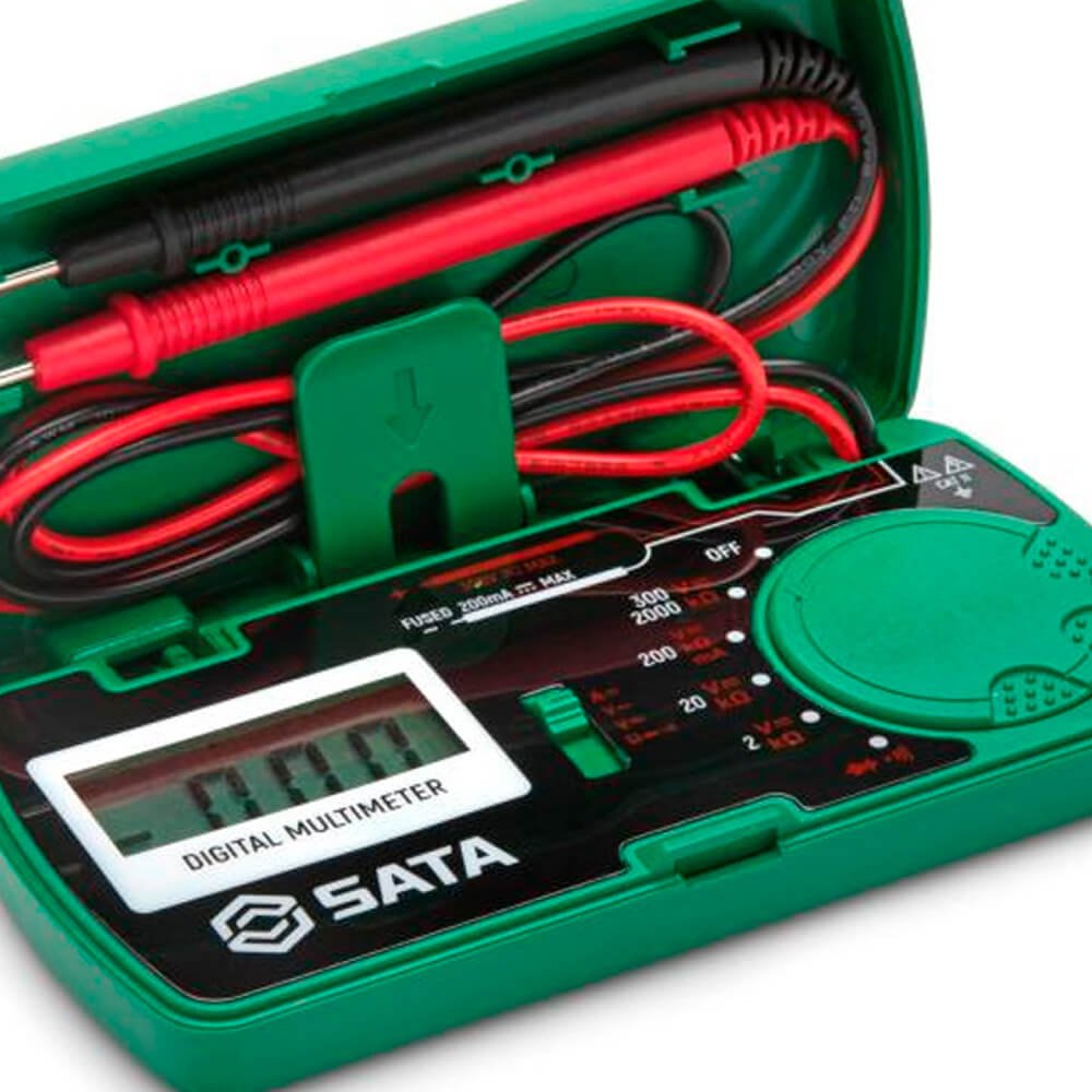 O Multímetro digital de Bolso SATA® caracteriza-se por seu transporte fácil e prático. Por ser pequeno, portátil e leve, a ferramenta tem o intuito de entregar aos usuários mobilidade e agilidade na execução do trabalho. Possui um alto desempenho, baixo consumo de energia e função de faixa automática. Seu LCD com luz de fundo branca de alta definição e dígitos grandes, garantem fácil visibilidade dos dados em áreas pouco iluminadas.