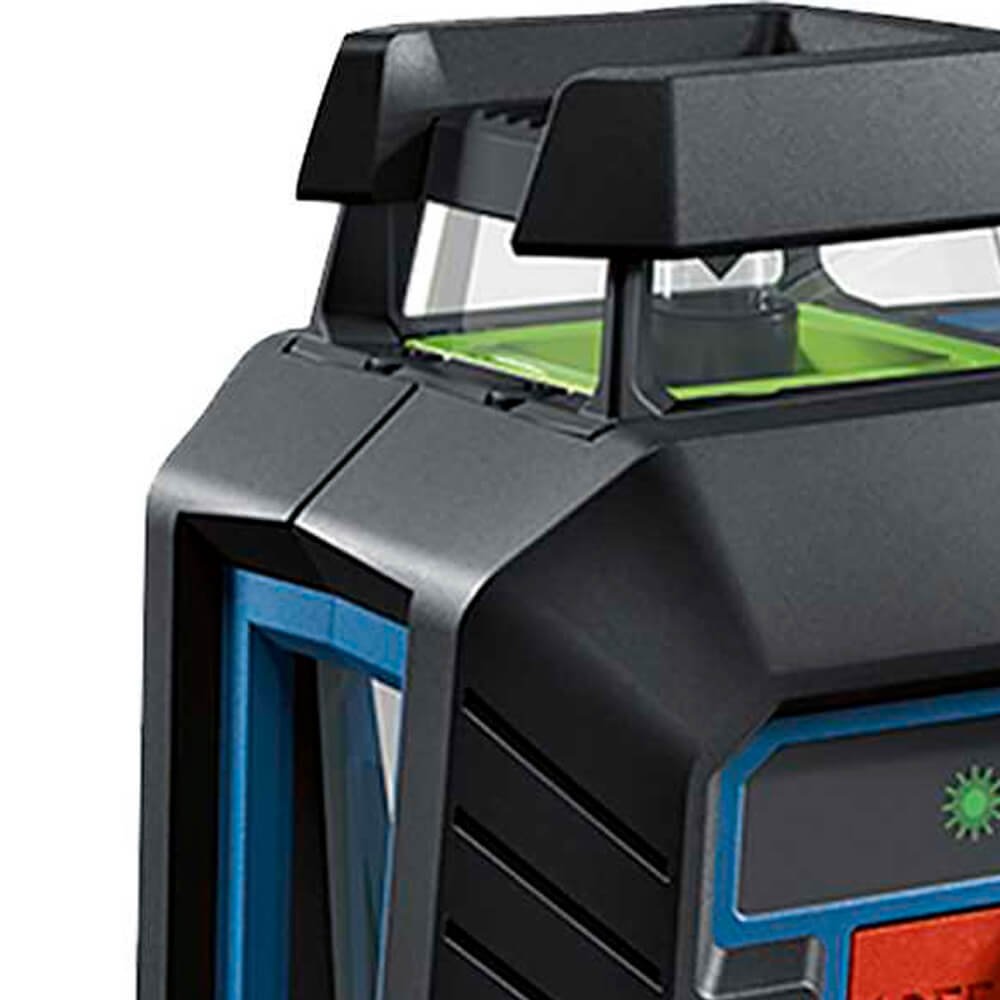O GLL 2-20 G Professional é um robusto nível laser de linhas fácil de usar e projeta tanto uma linha vertical como uma linha horizontal em 360°. Estas linhas verdes são altamente visíveis. Construído para lidar com condições difíceis, o nível laser de linhas vem em uma caixa robusta com revestimento de borracha com vidro embutido em conformidade com os padrões IP64 de proteção contra poeira e respingos de água. Operação intuitiva através do interruptor de ligar/desligar e um teclado de um botão para seleção fácil da configuração horizontal, vertical ou cruzada.