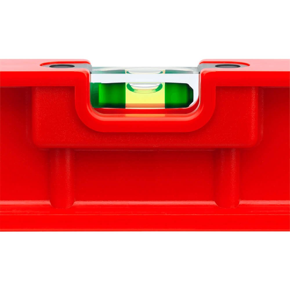 Outra característica importante é a leveza e robustez do nível. Os visores de bolha são manufaturados em acrílico super-resistente e com lente de aumento de +20% para facilitar a leitura.