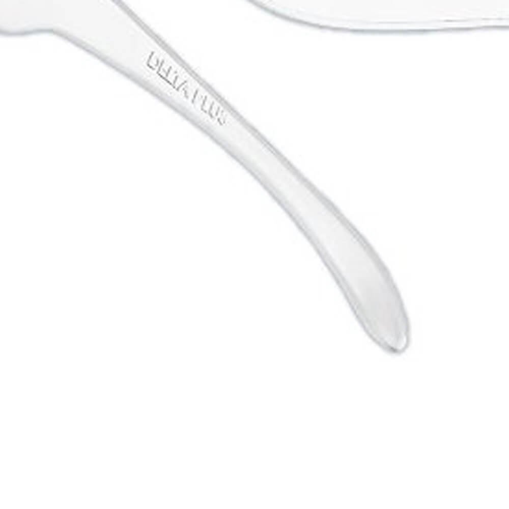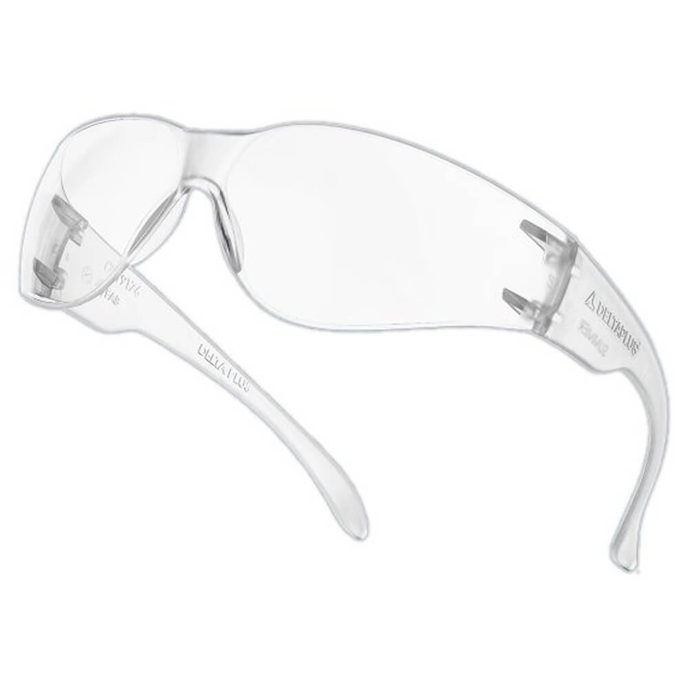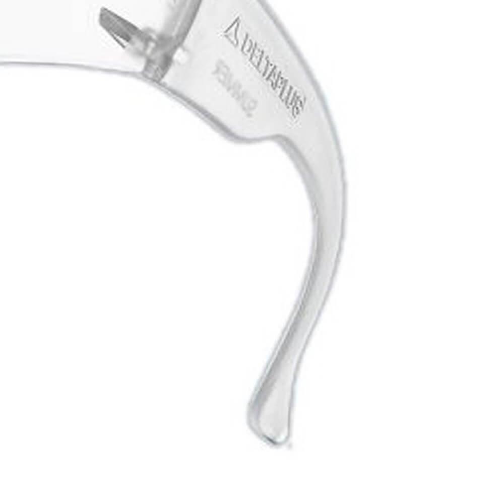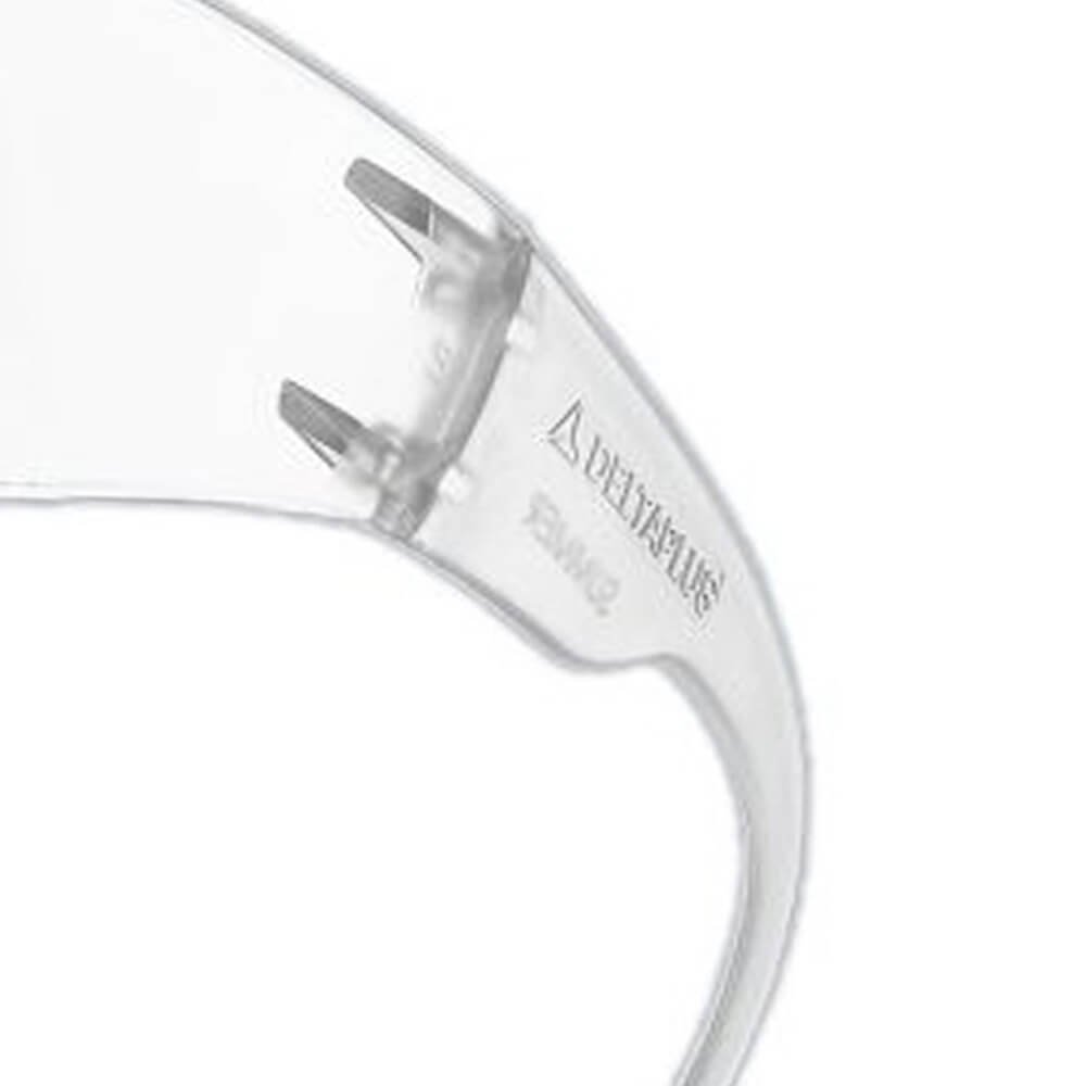 Os óculos de proteção SUMMER CLEAR da DELTA PLUS são desenvolvidos com armação e visor confeccionados em uma única peça de policarbonato incolor com ponte e apoio nasal injetados do mesmo material. As hastes, do tipo espátula, são confeccionadas do mesmo material da armação e fixas às extremidades do visor através de parafusos plásticos.