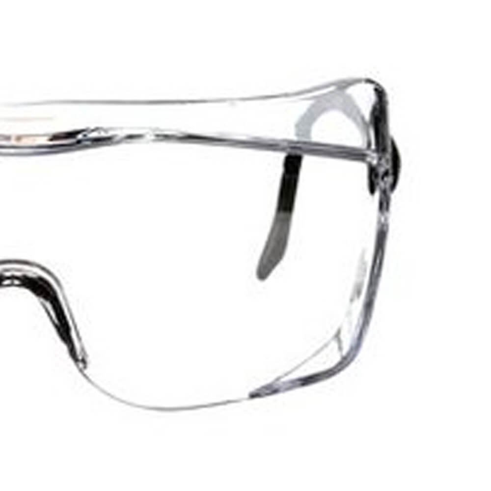 Os óculos de sobreposição 3M OX oferecem hastes ajustáveis para encaixar praticamente em rostos de qualquer tamanho e usuários de óculos prescritos. Suas lentes sem emenda com proteções laterais embutidas asseguram um largo campo de visão.