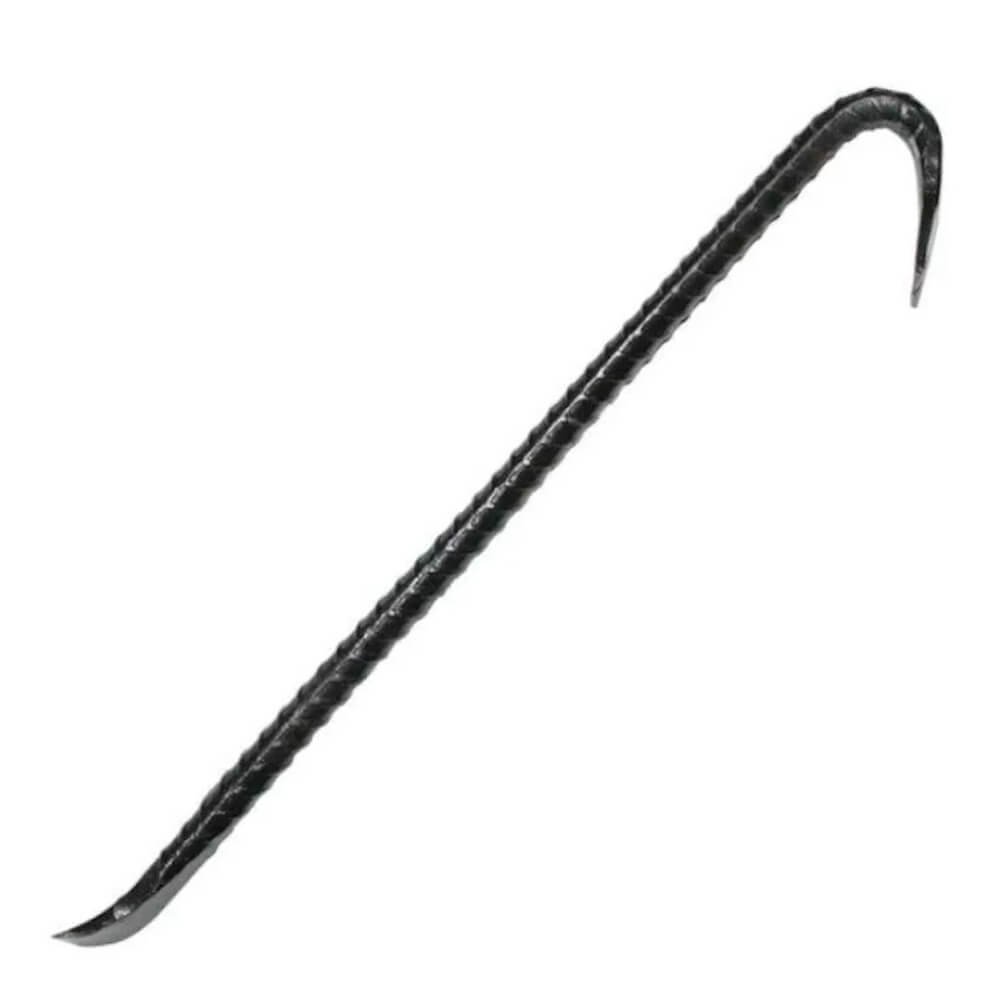 Possui gancho bifurcado em uma das extremidades, de modo que consegue agarrar um objeto quando ergue ou puxa.