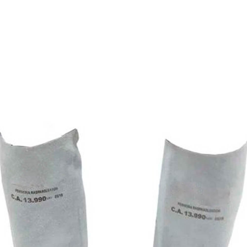 A Perneira possui espessura média de 1,50mm e gramatura 0,0815 gramas/cm² ou 0,815kg/m²., além disso possui na parte superior de forma indelével o numero do certificado de aprovação. CA: 13.990;