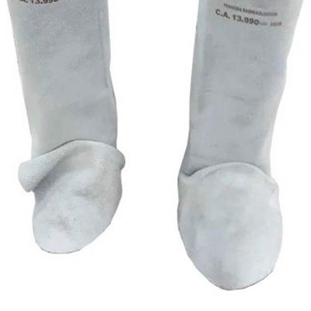A Perneira de Segurança de Raspa Remar, é confeccionada em raspa de couro bovino curtido ao cromo, com revestimento interno em grafatex, costurado com fio 100% algodão ou aramida, com fechamento das pernas e peito dos pés com velcro.