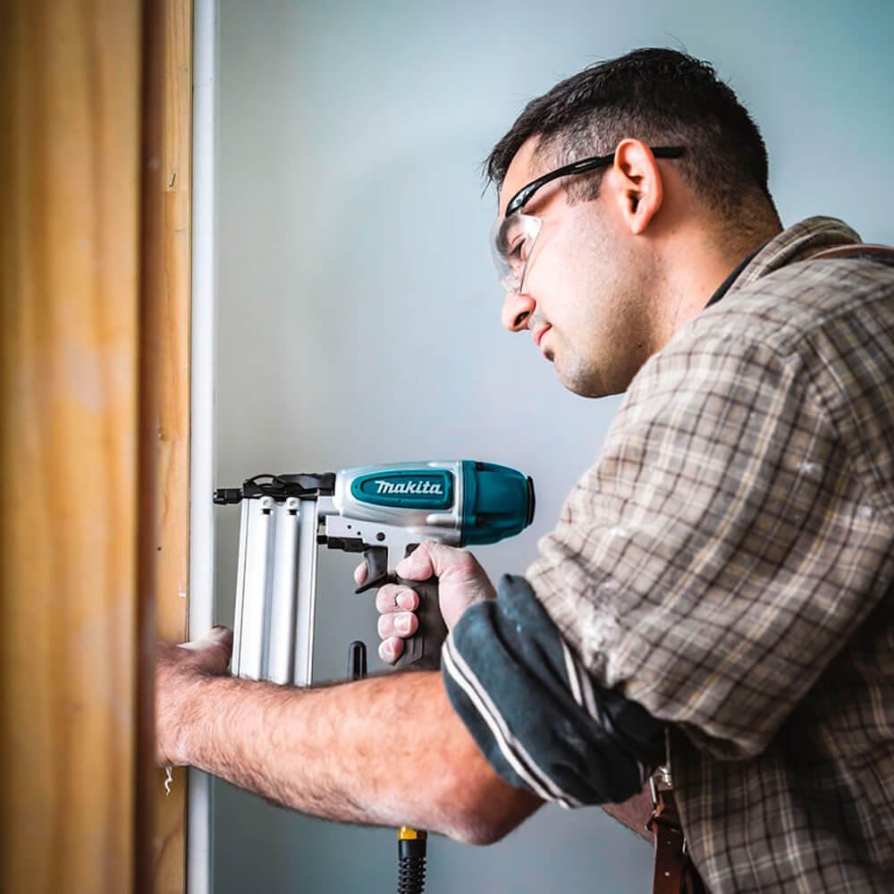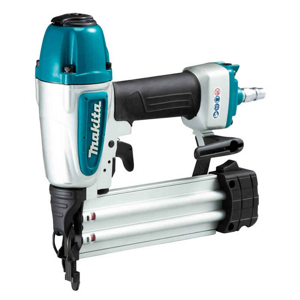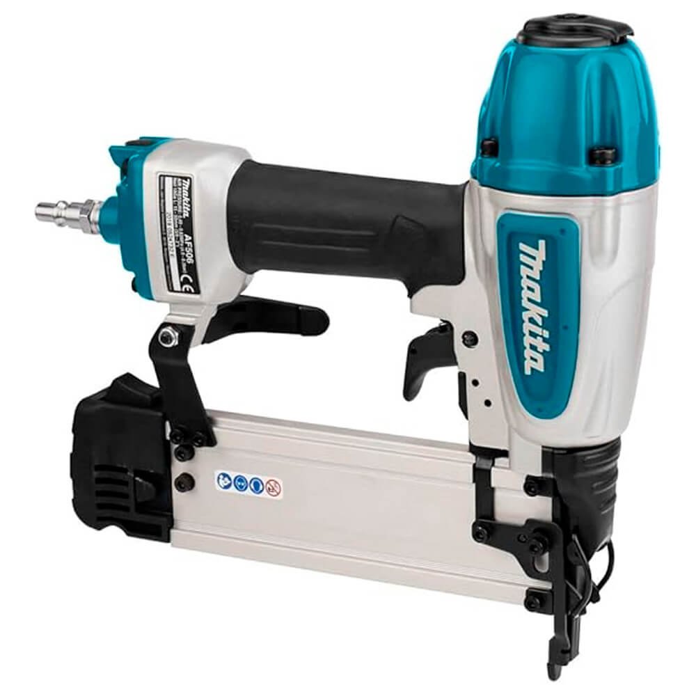 O Pinador Pneumático AF506 Makita, é próprio para fixação de trabalhos internos e móveis. Com capacidade de 15 a 50 mm tipo "F", ele é indicado para fixação de rodapés, forros, gavetas, filetes, molduras, entre outros.