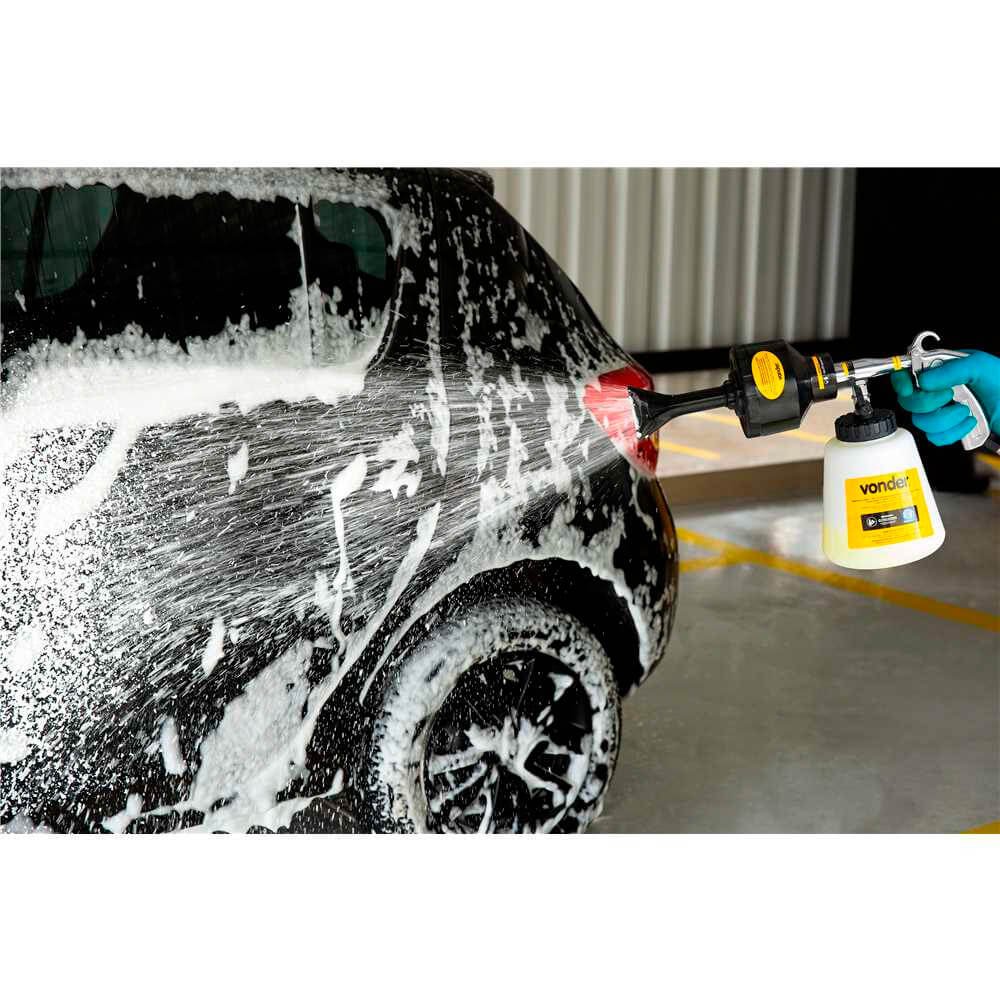 Indicada para limpeza automotiva, pois proporciona espuma intensa (floculação). Utilizada com compressor de ar. Compressor indicado: 10 PCM. Utilize apenas detergentes líquidos e neutros. Não acompanha conector.
