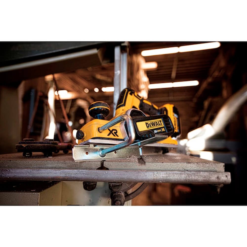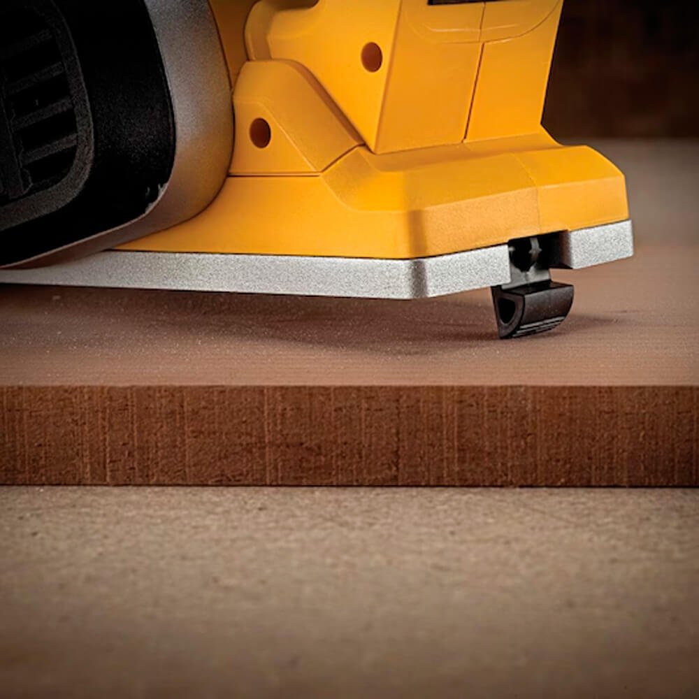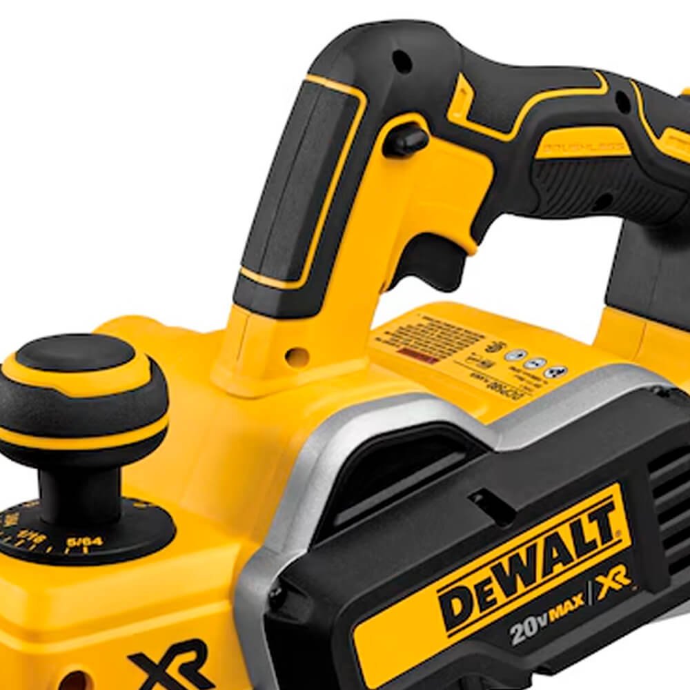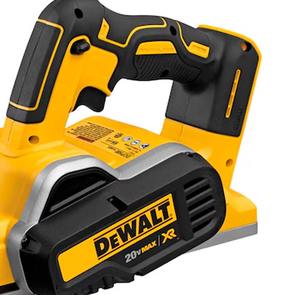 Plaina é parte do sistema 20V MAX* XR LI-ION com motor sem escovas de cavão ( BRUSHLESS) e 15.000 RPM. Acompanha 2 lâminas de Widea Reversíveis (instaladas) e 1 Guia de corte. Profundidade (máxima) de corte 5/65" (2mm) e Largura de corte 3-1/4" (82mm).