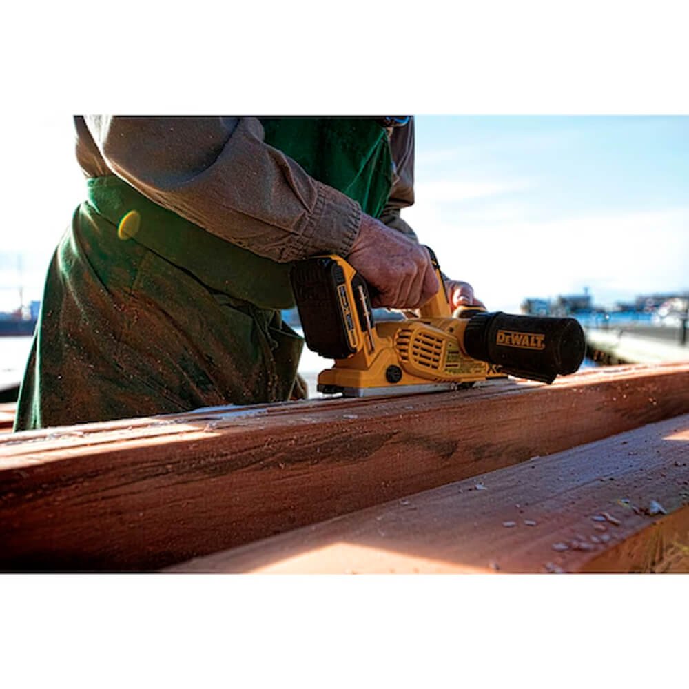 Plaina é parte do sistema 20V MAX* XR LI-ION com motor sem escovas de carvão ( BRUSHLESS) e 15.000 RPM. Acompanha 2 lâminas de Widea Reversíveis (instaladas) e 1 Guia de corte. Profundidade (máxima) de corte 5/65" (2mm) e Largura de corte 3-1/4" (82mm).