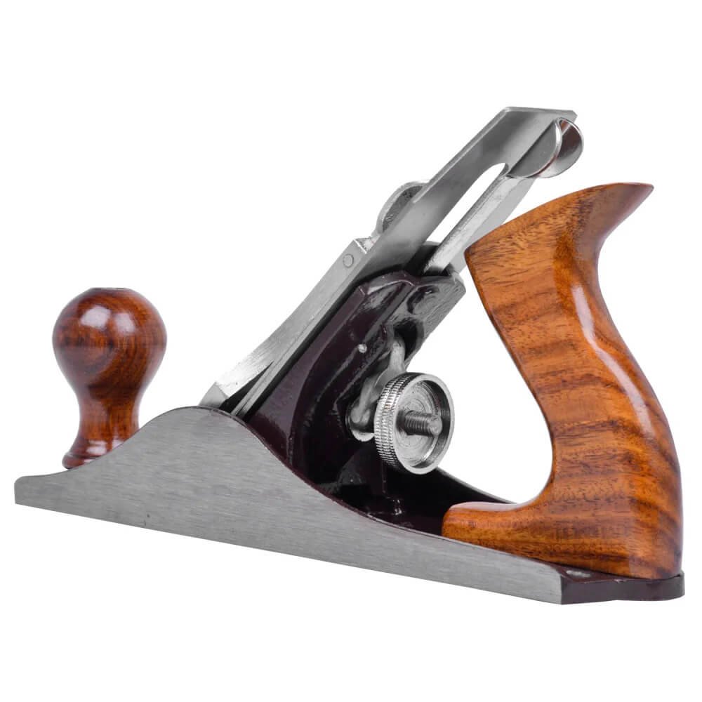 Plaina global tamanho #4 que traz em sua composição ferro fundido usinadas; A Plaina global com lâmina em aço carbono possui dispositivo para a geometria do parafuso, alças resistentes, tampa em aço para acoplamento preciso e base de ferro fundido usinada com precisão.