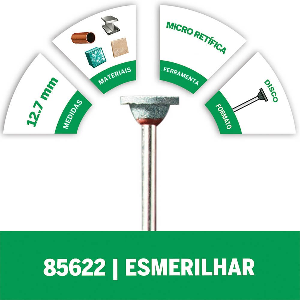 Esse acessório é perfeito para afiar, eliminar rebarbas e efetuar trabalhos gerais de esmerilhamento em materiais mais duros