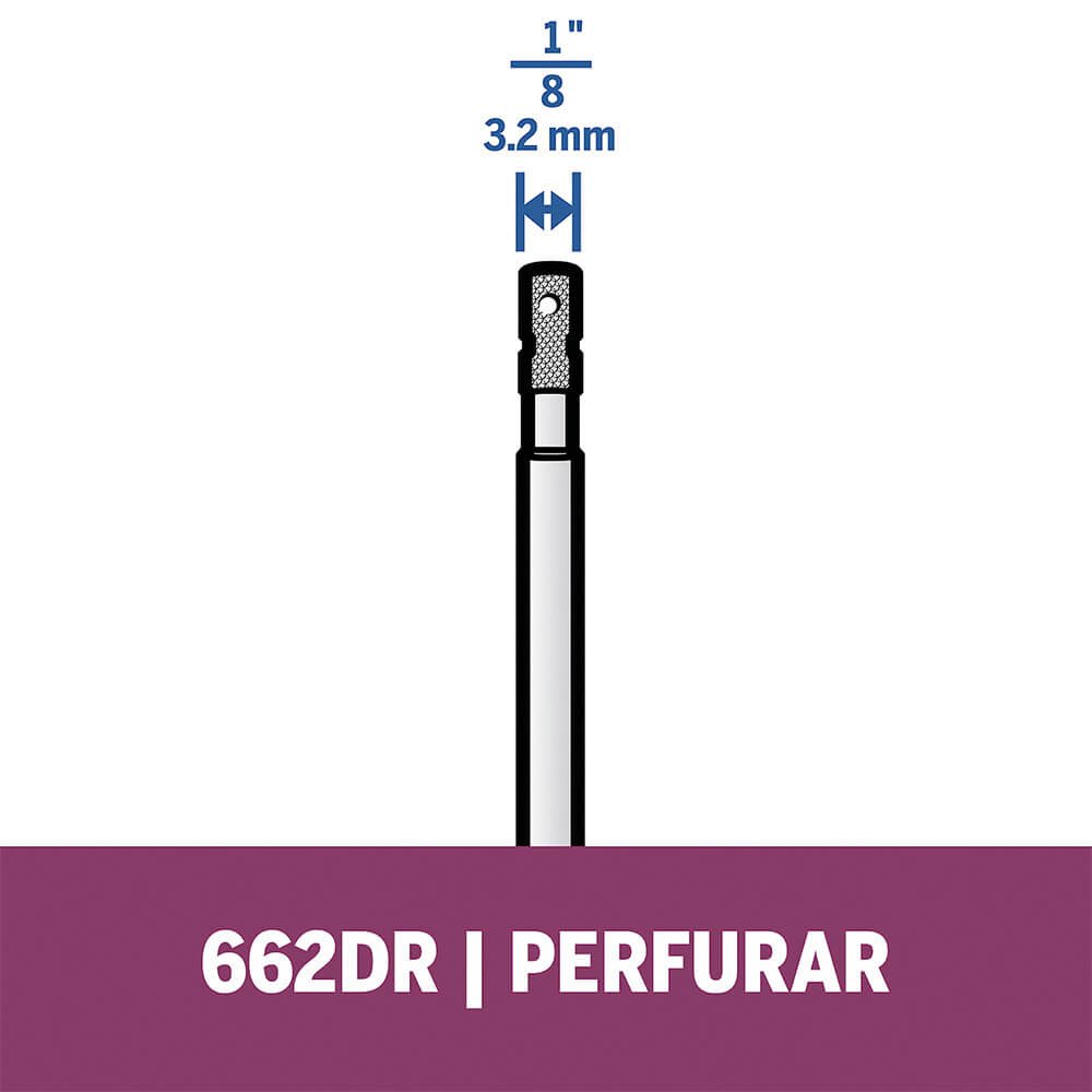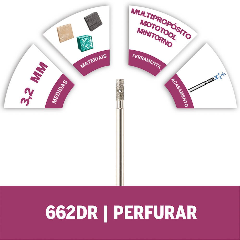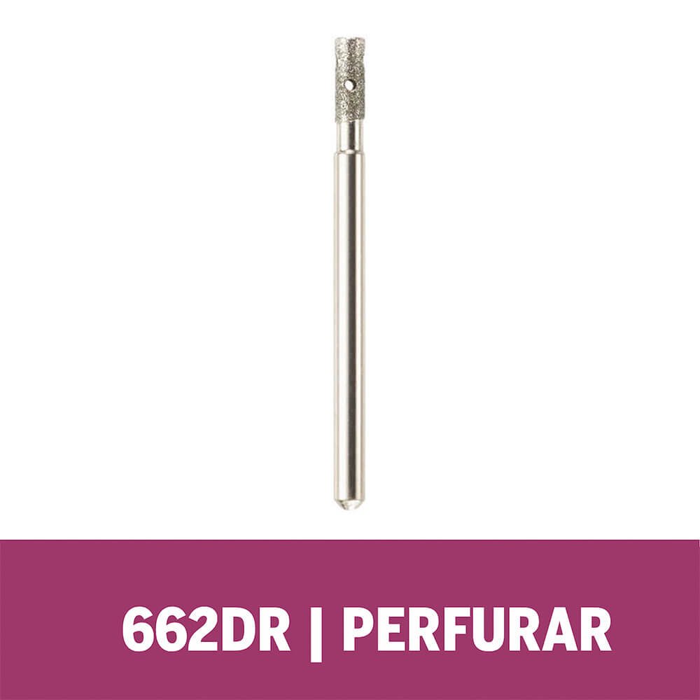 O grão de diamante está disposto a 360 graus ao redor da circunferência da ponta permitindo a utilização em uma ação de raspagem para alargar um furo, se necessário.