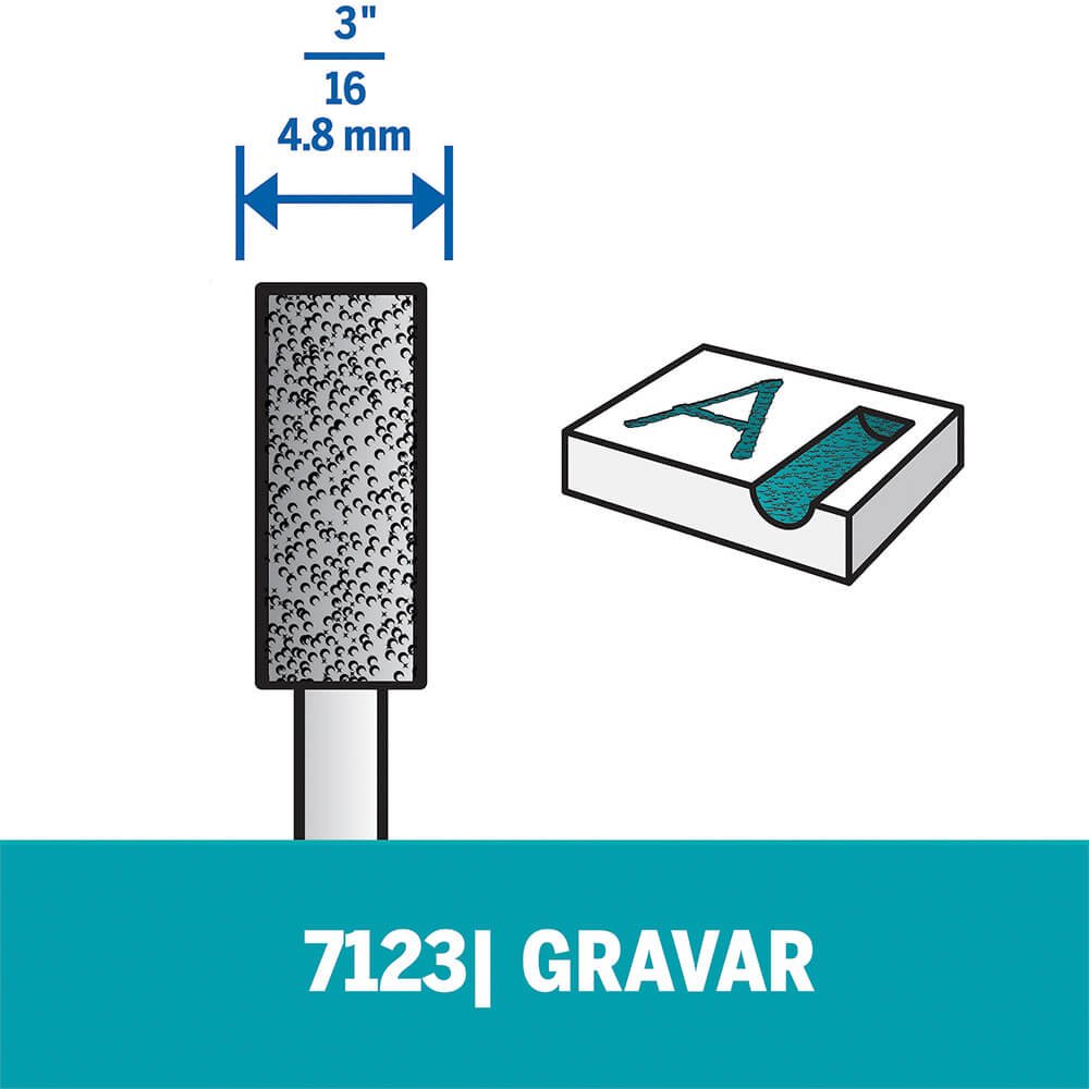 - O formato de cilindro da ponta de diamante corta áreas planas, bordos redondos e efetua cortes de parada e cortes em V, enquanto a ponta efetua ranhuras e sulcos de fundo plano, cortes laterais planos e cortes em V quando segurada a 45 graus