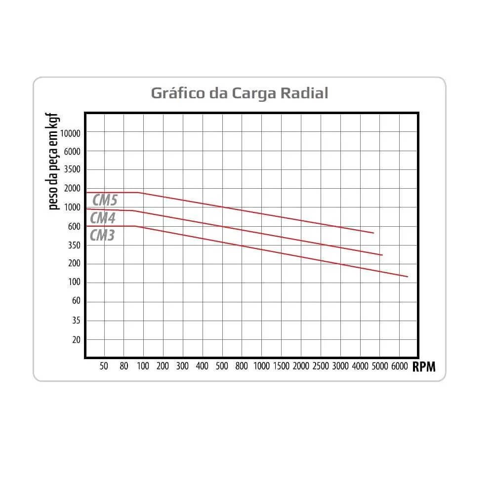 - Carga Radial: consulte as imagens do produto para ver o gráfico;