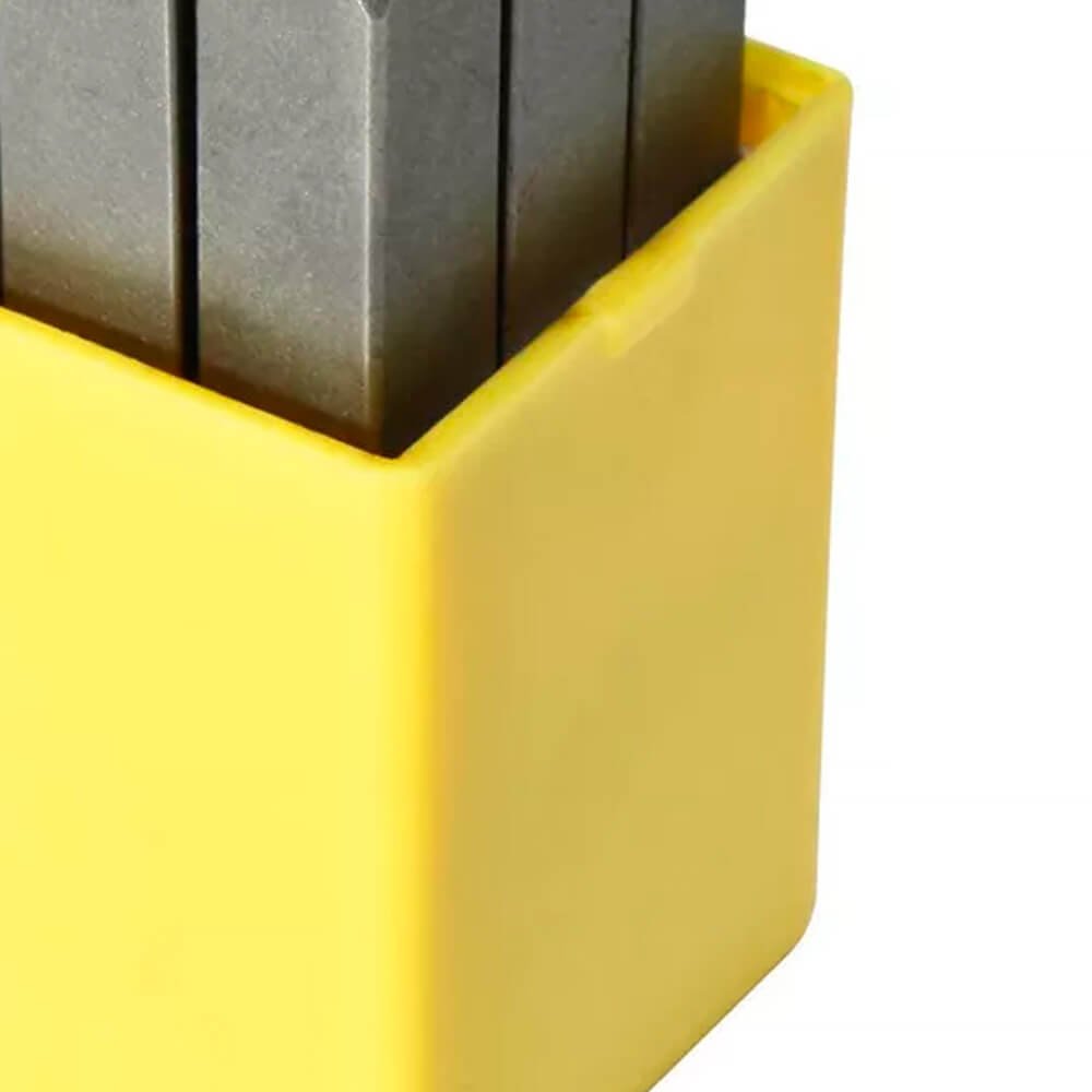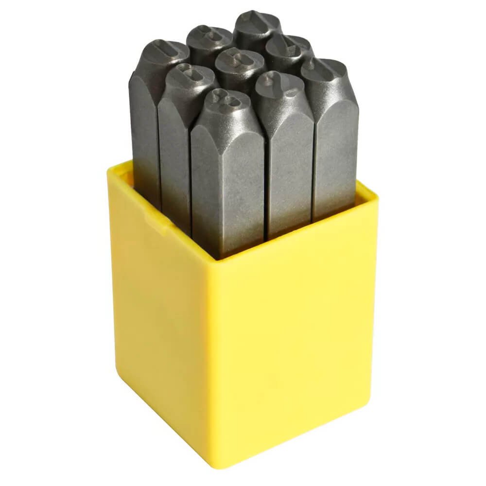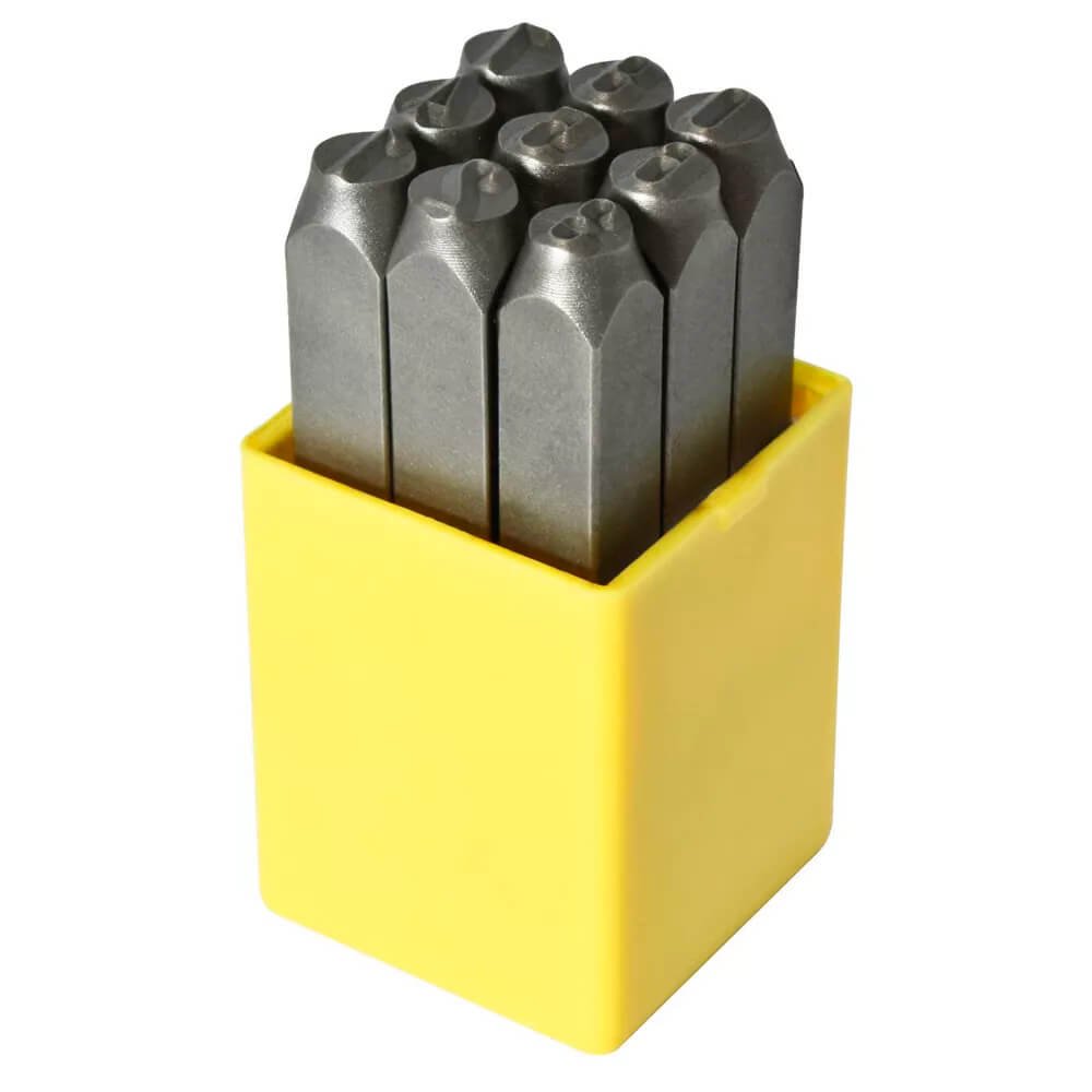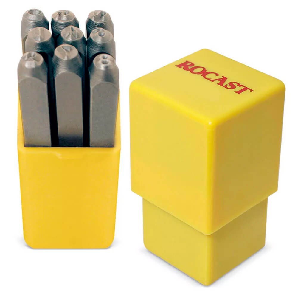 É um jogo que possui 9 Peças com 5,0mm de tamanho. Essencial para fazer marcações e gravações. Acompanha estojo plástico;