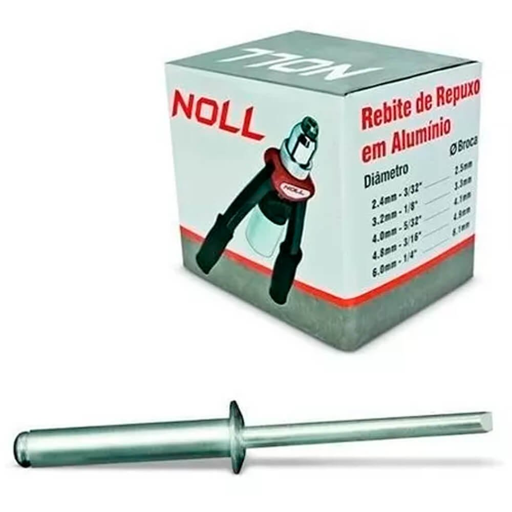 Este rebite é fabricado pela marca Noll, conhecida pela sua excelência e qualidade em ferramentas. É feito de alumínio, material resistente e durável, garantindo a longa vida útil do produto. O modelo possui um diâmetro de 4mm, perfeito para uma ampla gama de aplicações.