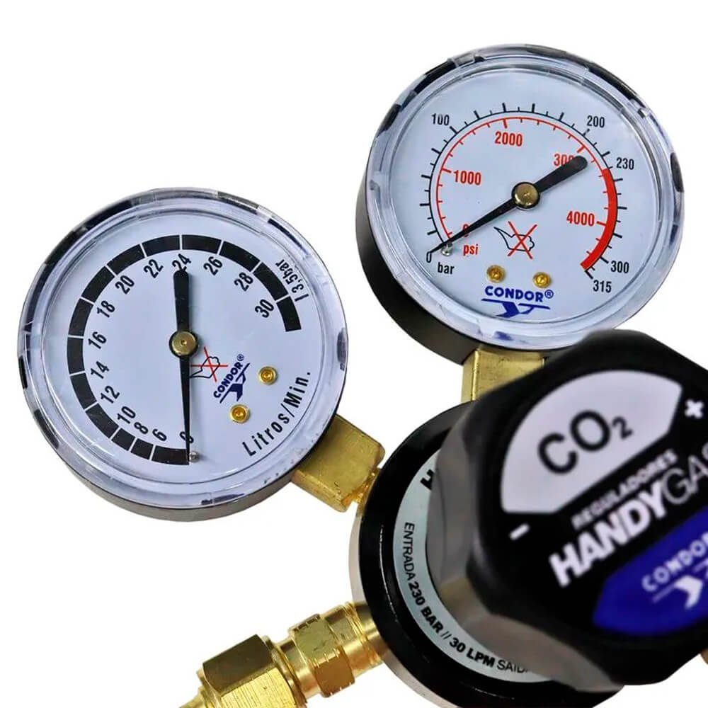 Utiliza CO2, porém pode ser usado para mistura de gases, desde que a maior porcentagem do gás seja CO2. Caso a mistura de gases tenha maior porcentagem, outro gás, por exemplo o Argônio, deve ser usado um Regulador de Pressão para Argônio (que também serve para mistura de gases, desde que o Argônio seja o gás predominante da mistura).