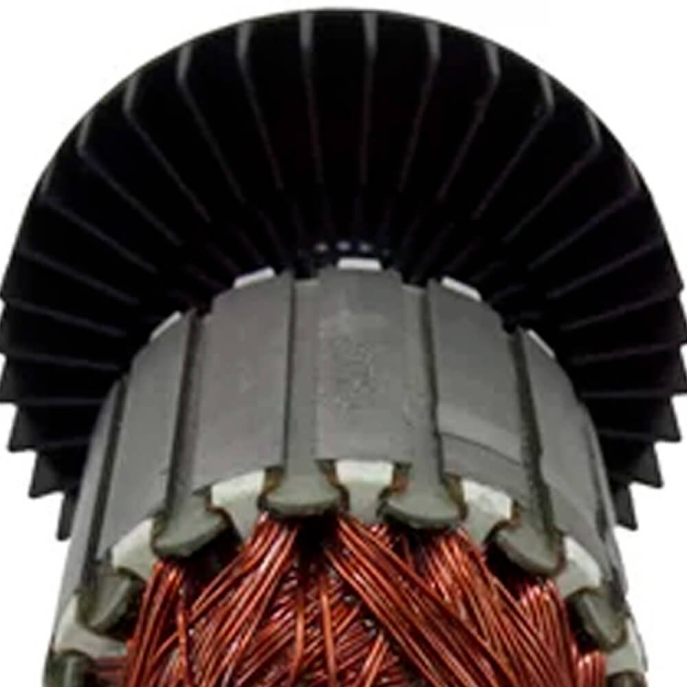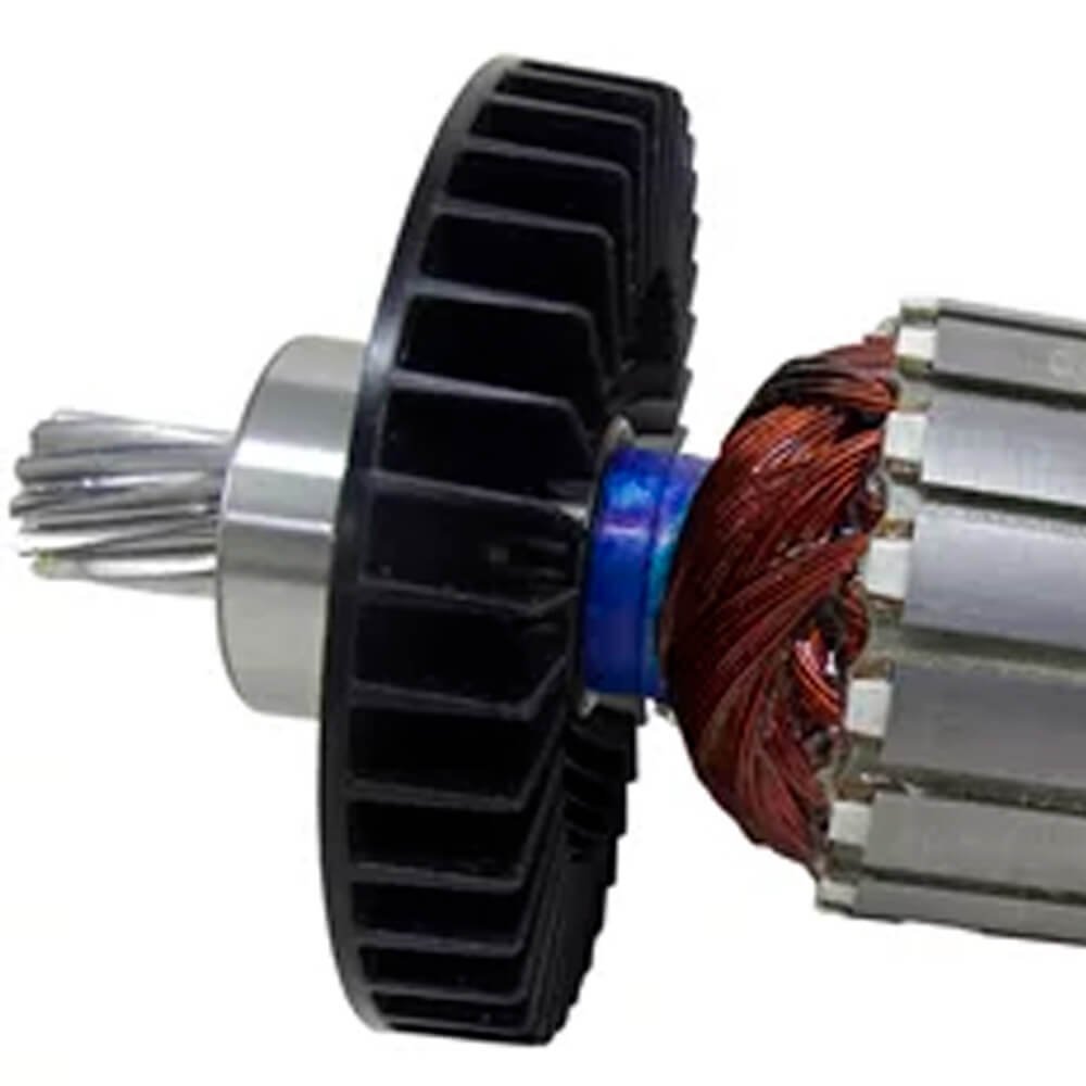 Induzido também conhecido como rotor, usado em conjunto com o estator ou bobina de campo e escovas de carvão.