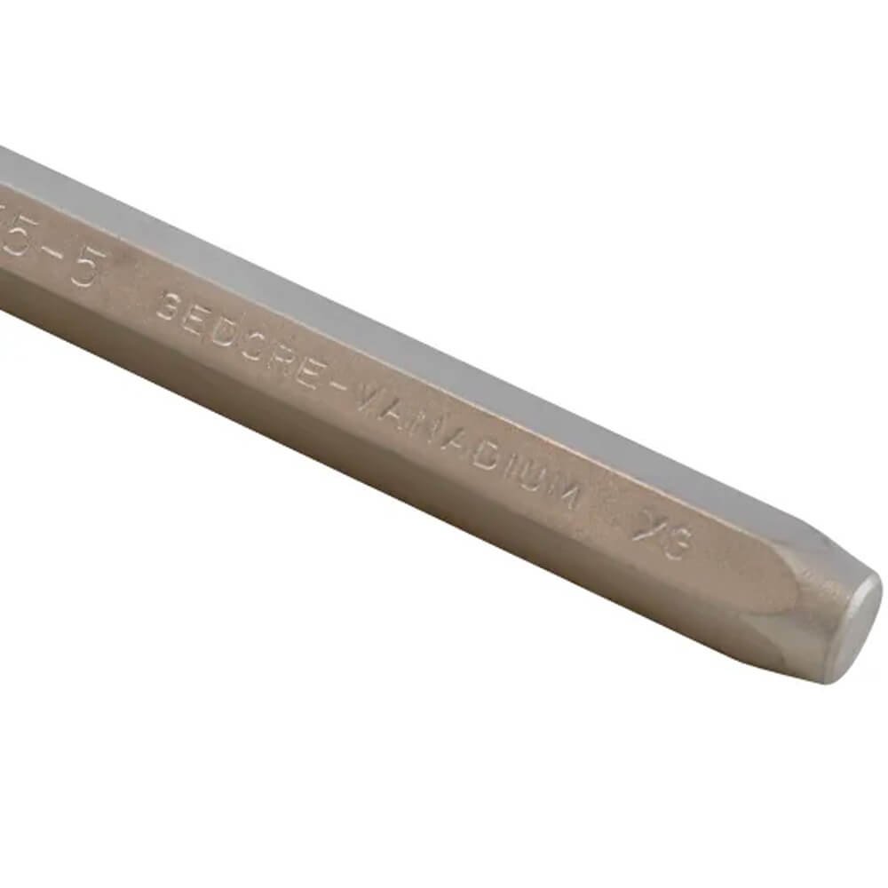 Aço Gedore-Vanadium. Acabamento niquelado. Possui tratamento térmico total e batente com têmpera por indução.