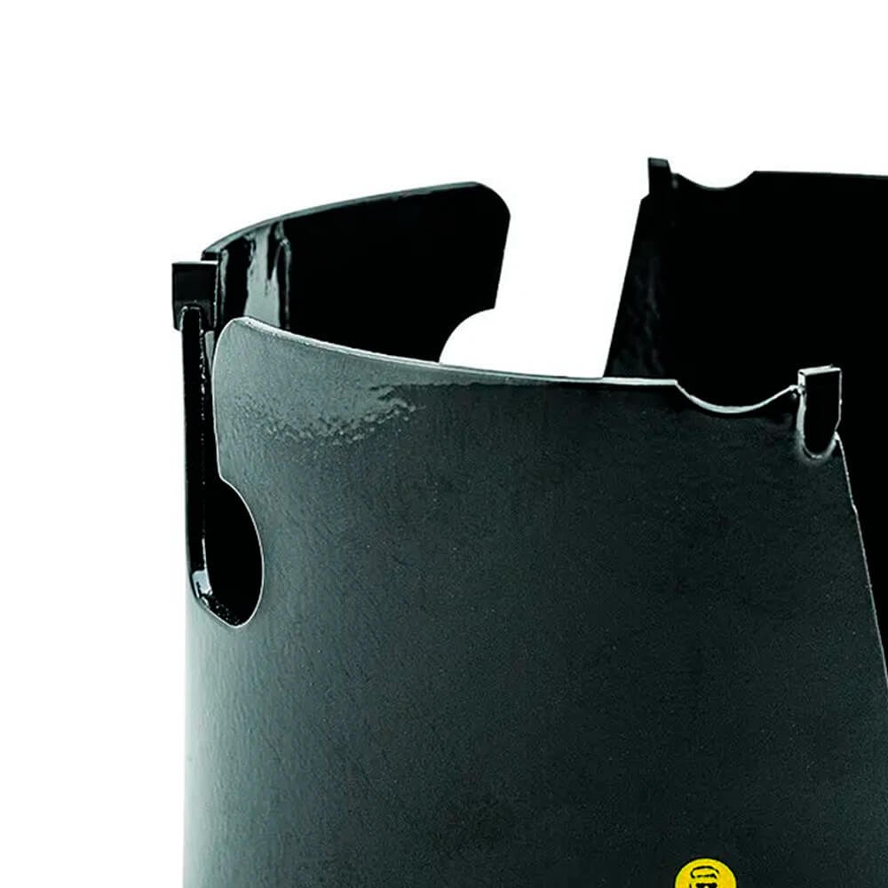 Eficiência: Corte rápido e baixo aquecimento na remoção de cavacos no corte de madeira, MDF, plástico, gesso e tijolo até cinco vezes mais rápido do que serras bimetálicas, além de acabamento no furo superior.