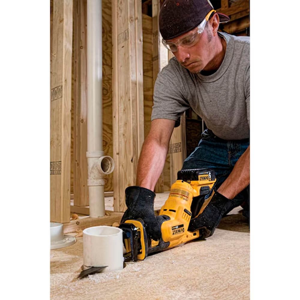 Serra Sabre Compacta 20V MAX* LI-ION. 4 posições para instalação da lâmina; Engate rápido da lâmina sem uso de chave; Motor robusto com escovas de carvão substituíveis; Empunhadura emborrachada; Interruptor com controle de velocidade variável e gatilho com trava de segurança; Sapata ajustável e pivotante; Freio elétrico. Velocidade sem Carga 0-2900 GPM. Comprimento do Golpe 1-1/8’’ (29mm).