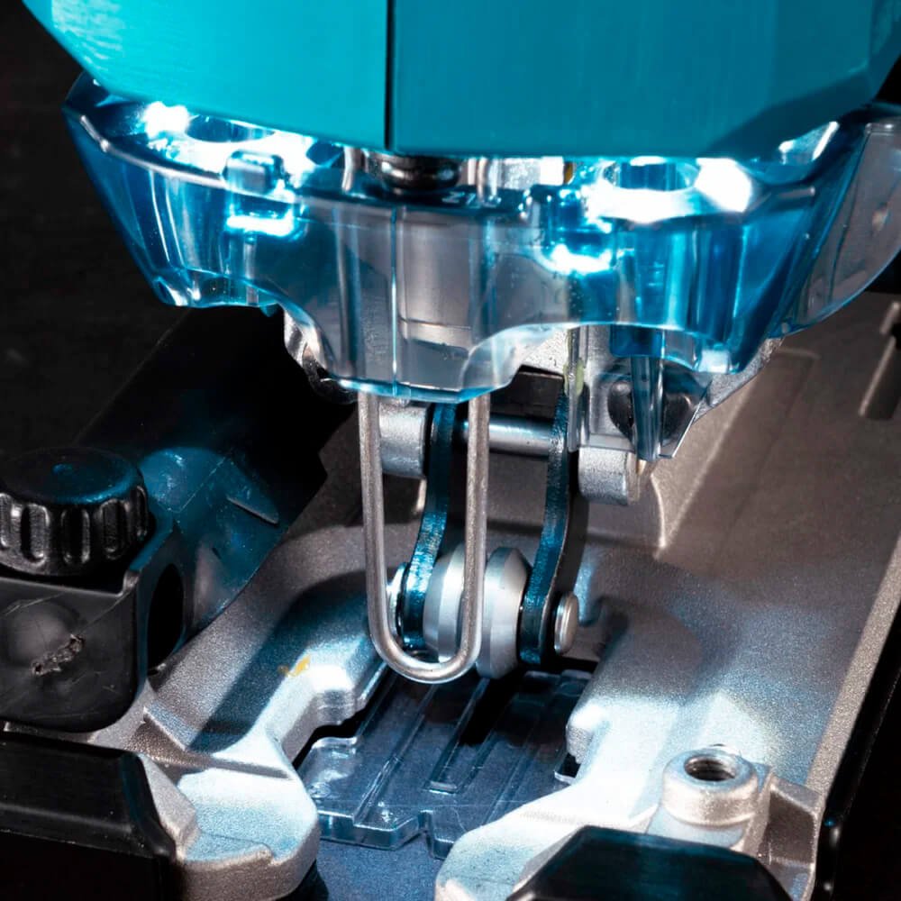 A Serra Tico Tico JV001GZ Makita, tem velocidade constante de trabalho com avanço pendular da lâmina. Com a tecnologia soft no load a Makita JV001GZ, traz protetor plástico da sapata e sistema que sopragem do pó.