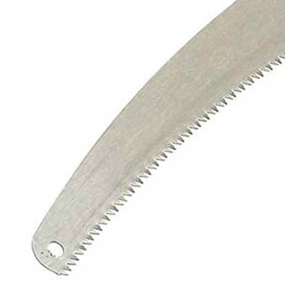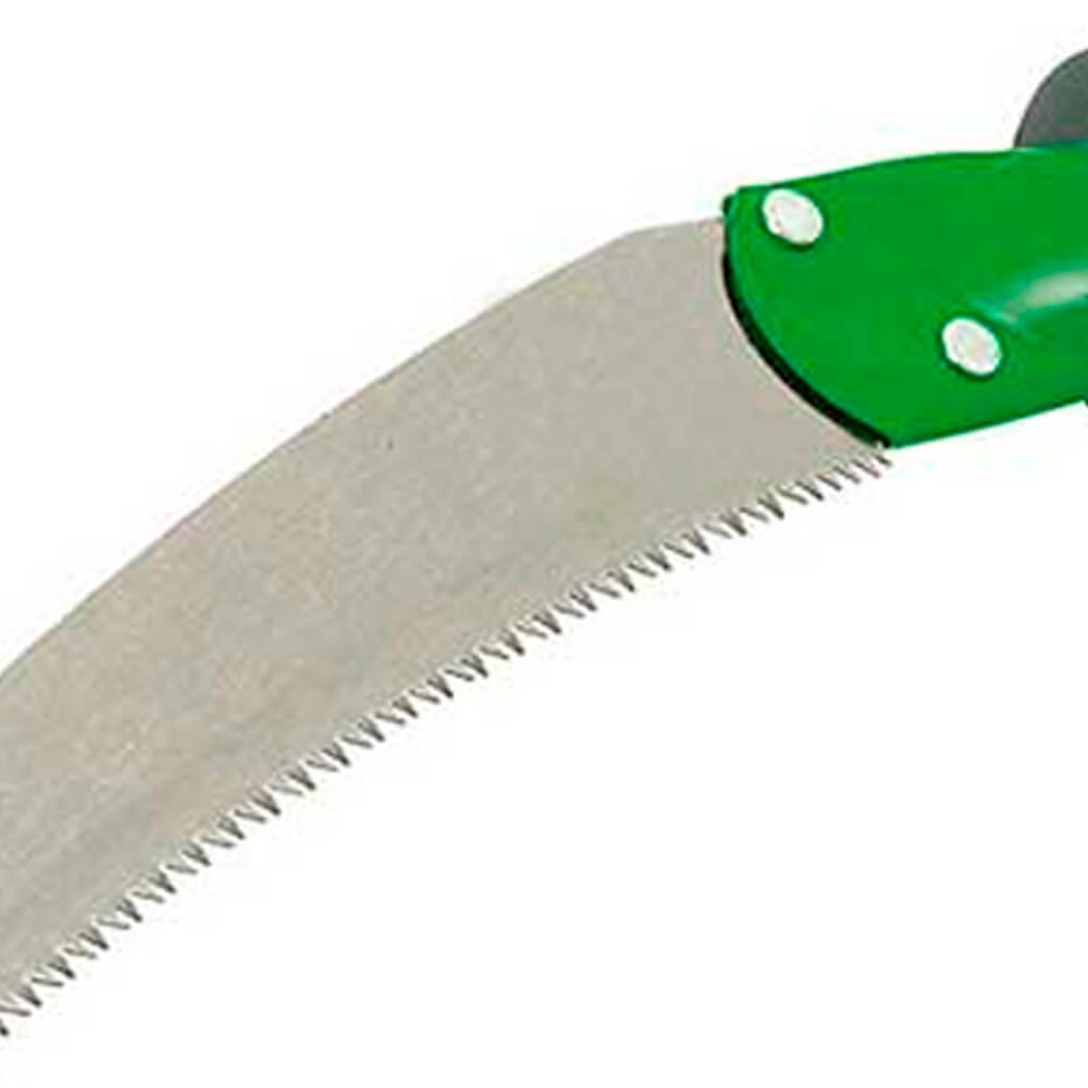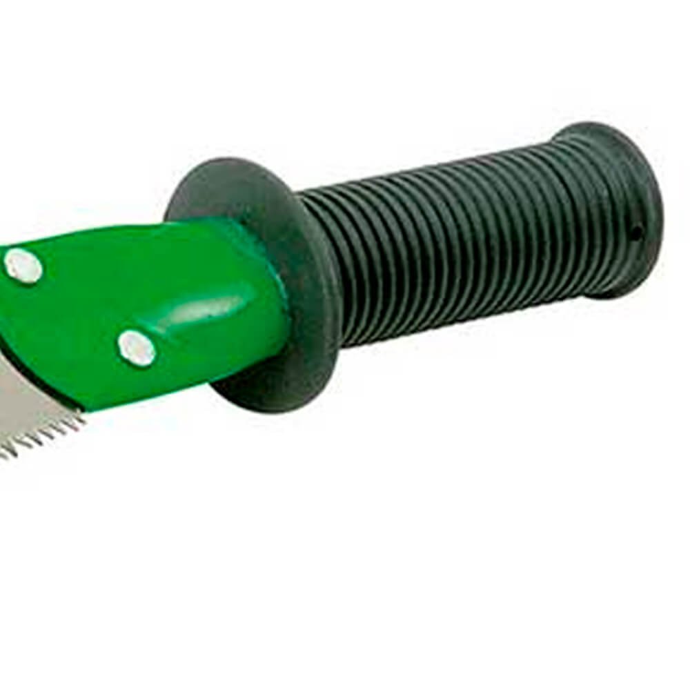 Possui dentes travados e ligeiramente inclinados para trás, tornam a operação de corte mais leve e precisa. O cabo de madeira permite o corte com altura de até 3 metros.